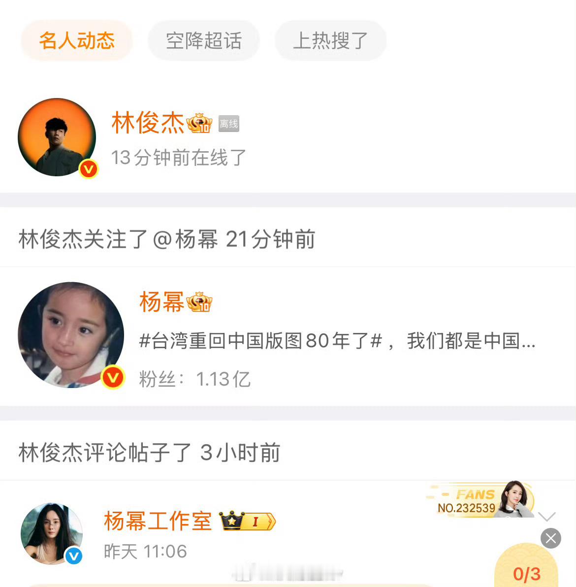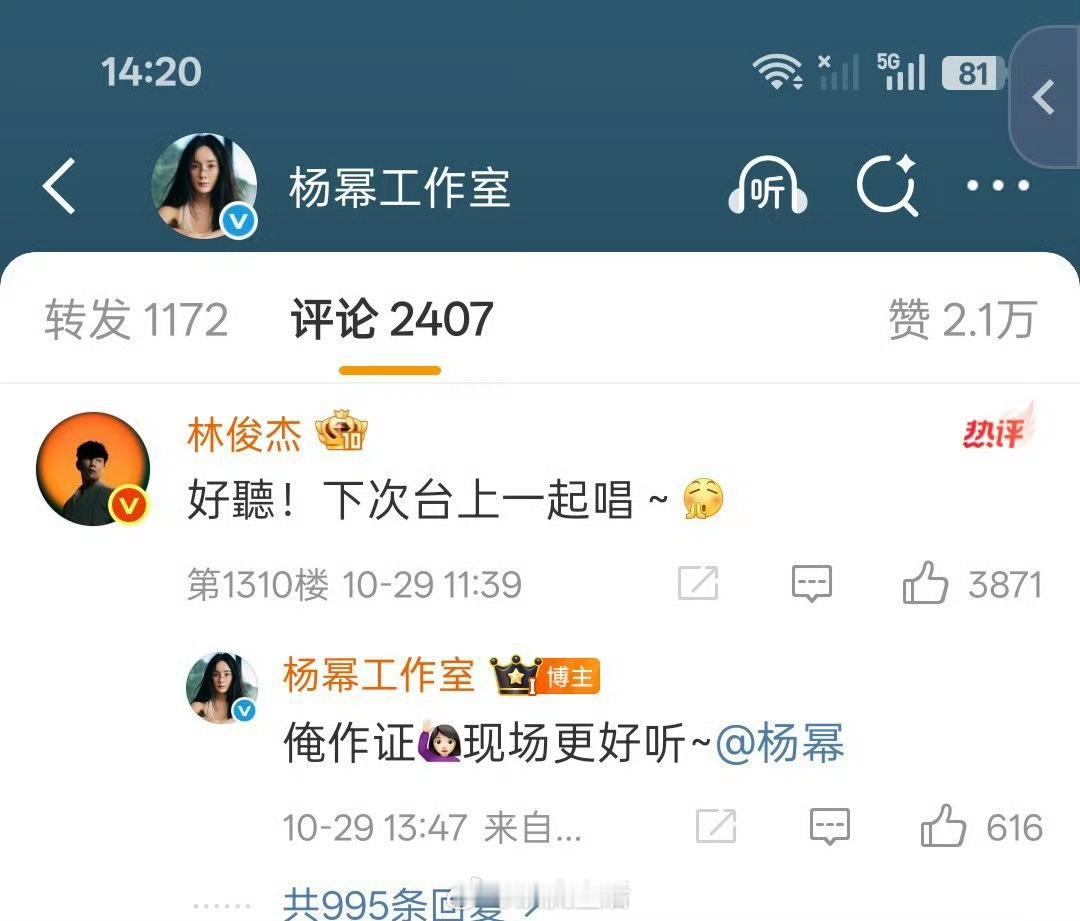 杨幂工作室林俊杰关注了杨幂和工作室,这是真的要梦幻联动了吧。期待期待,搞快点。[