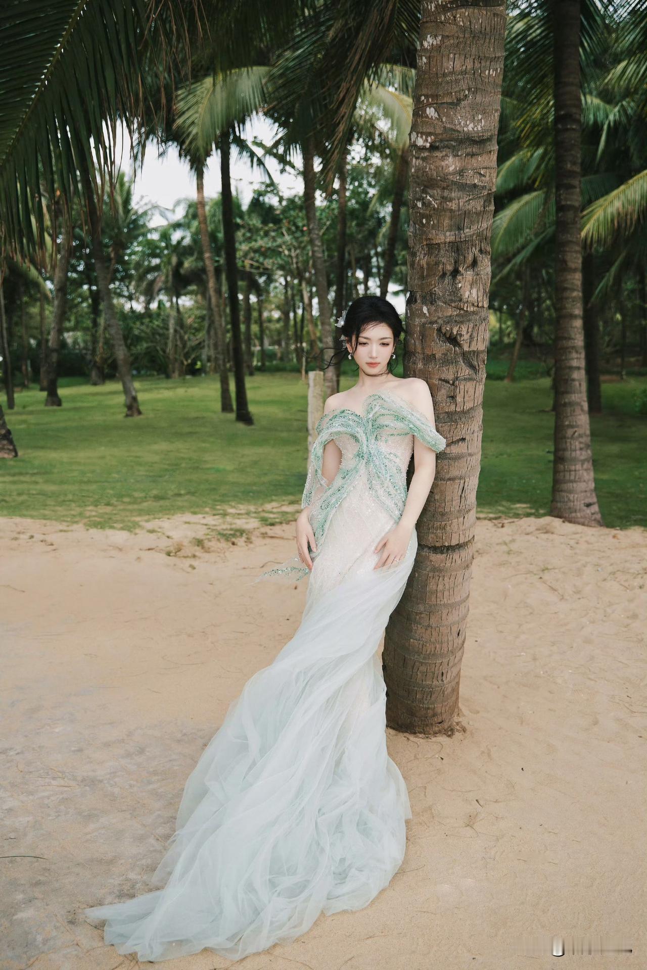 海把它的珍藏,都绣在了@杨幂 的裙上, 当她行走,一切便有了形状——是浪花,是鳞