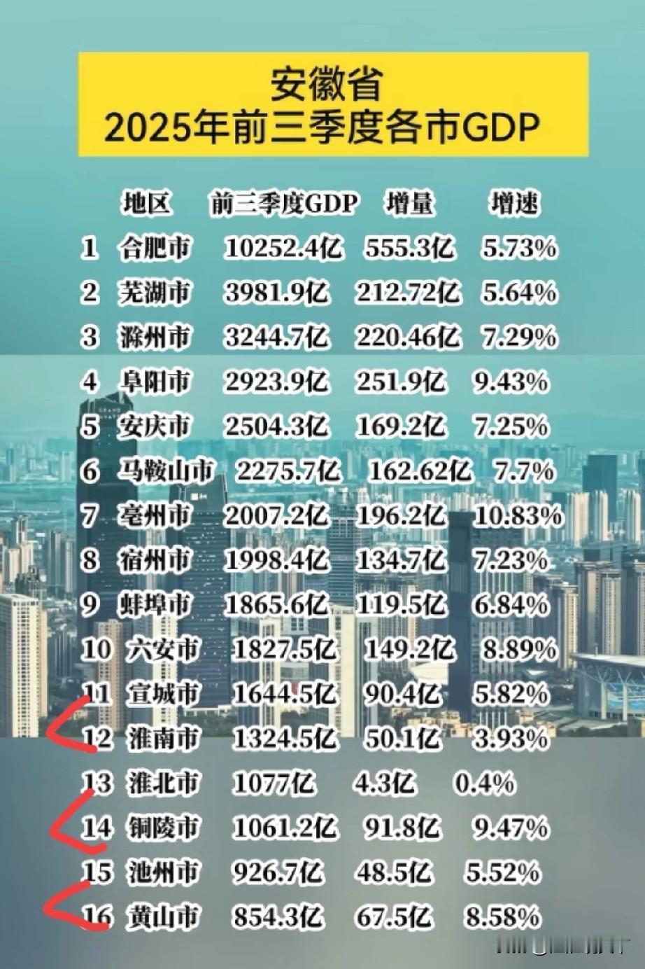 安徽16市变成13市,是不是一下子数据就好看了? 安徽6100万常住人口,16个地级市,周边几个邻居,山东1.01亿人口,16个地级市,江苏8500万人口,13个地级市,浙江6600万人口,11个地级市。 河南,湖北,江西也是安徽邻居。 安徽的城市在国内排名没有什么竞争力,但是很多人不知道,皖南6市人口加起来还没有江苏省苏州市人口多,芜湖,马鞍山,宣城,黄山,铜陵,池州全部人口加起来还没有苏州人口多,苏州约1300万人口比安徽6市人口还多。 安徽前三季度各市GDP数据都出来了,不分皖南皖北,把排名后6名的宣城,淮南,淮北,铜陵,池州,黄山,合并成3个地级市,安徽总共就13个地级市,看看安徽城市还那么差吗?(乱合并假设一下,如果按地图合并又是争议) 安徽6100万人口,13个地级市,江苏8500万人口,13个地级市,安徽城市肯定比不了江苏,但是也不会像现在这样毫无竞争力? 安徽这几个100万-200万左右人口城市,越来越没有发展动力,行政区划调整早晚需要动一动。安徽经济排名 安徽GDP 安徽城市竞争力 安徽县域gdp 安徽发展现状 安徽地图 安徽人均收入