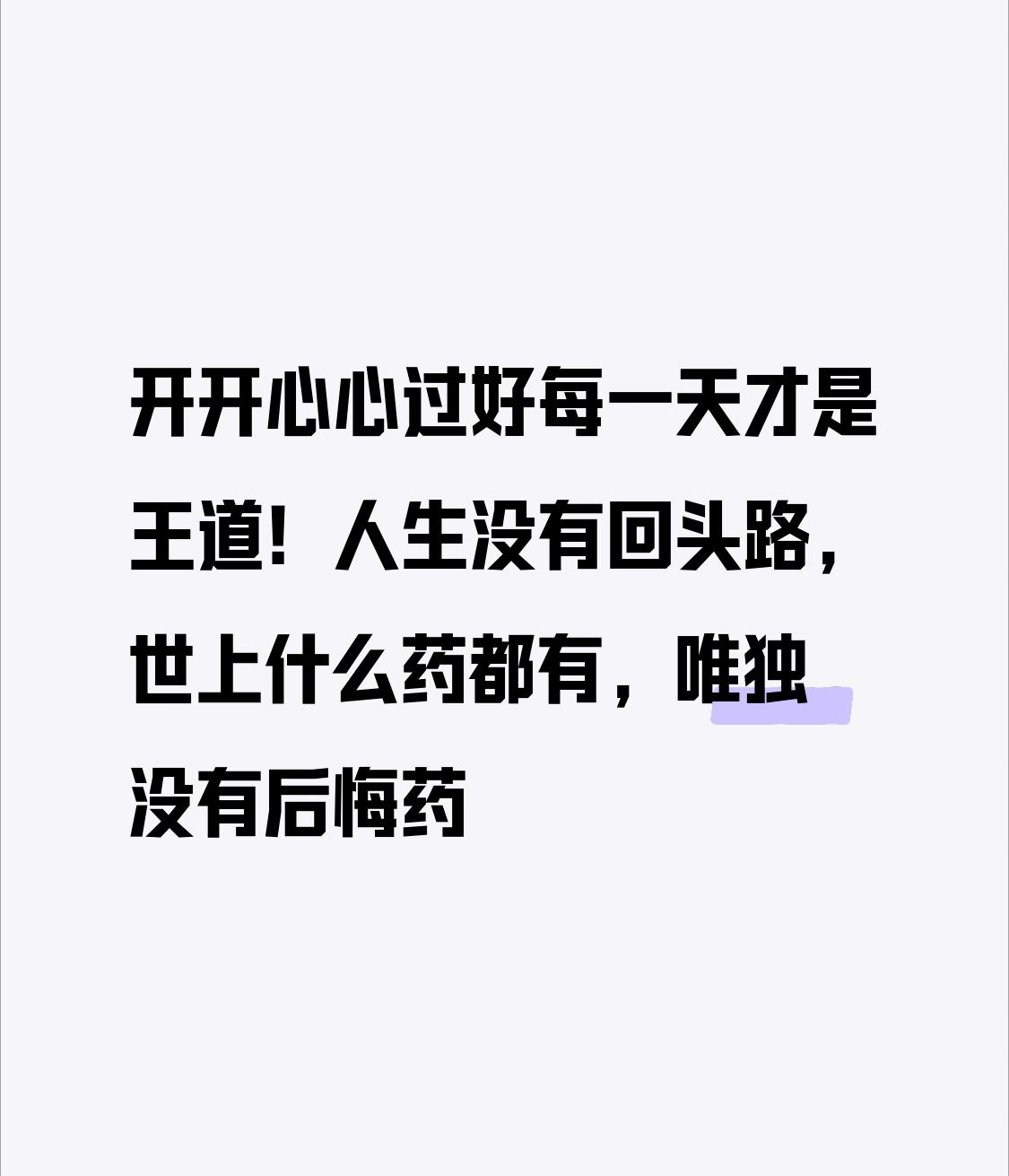 人生没有回头路,世上也没有后悔药,这话说得太对了。谁这辈子还没犯过错呢,不管有意无意,错了就是错了,再后悔自责也没用。就像选择一条路走下去,不管结果好坏,都是自己选的。 过去的事就像翻过去的日历,再纠结也回不去。我们能做的就是吸取教训,着眼未来。别太在意别人的看法,把在意的东西看淡些,用清醒的理智压制不该有的情绪。开开心心过好每一天,这才是生活的王道。
