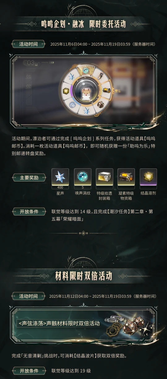 为漂泊者带来2.7版本即将开启的活动资讯,欢迎漂泊者查看!