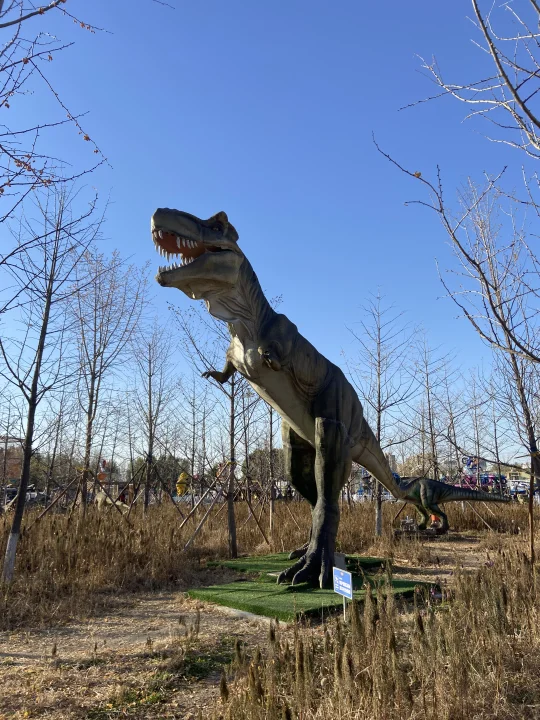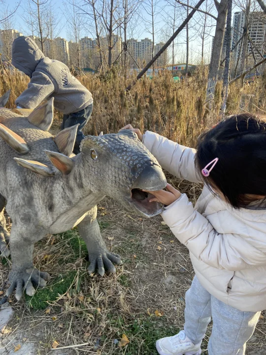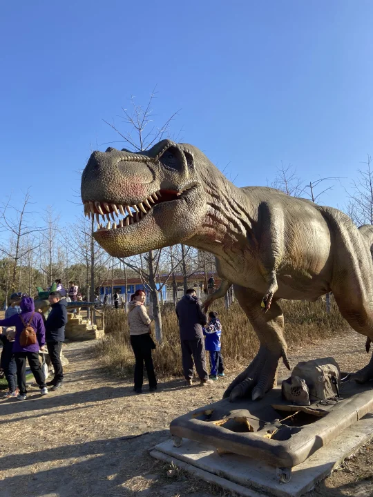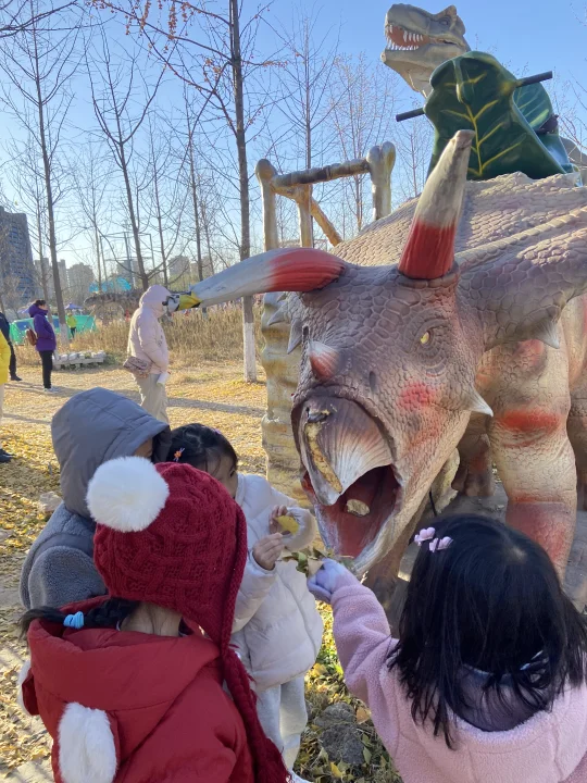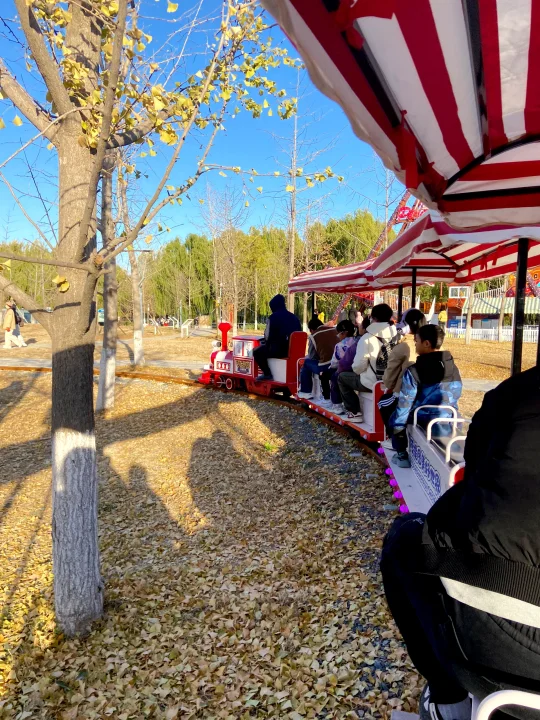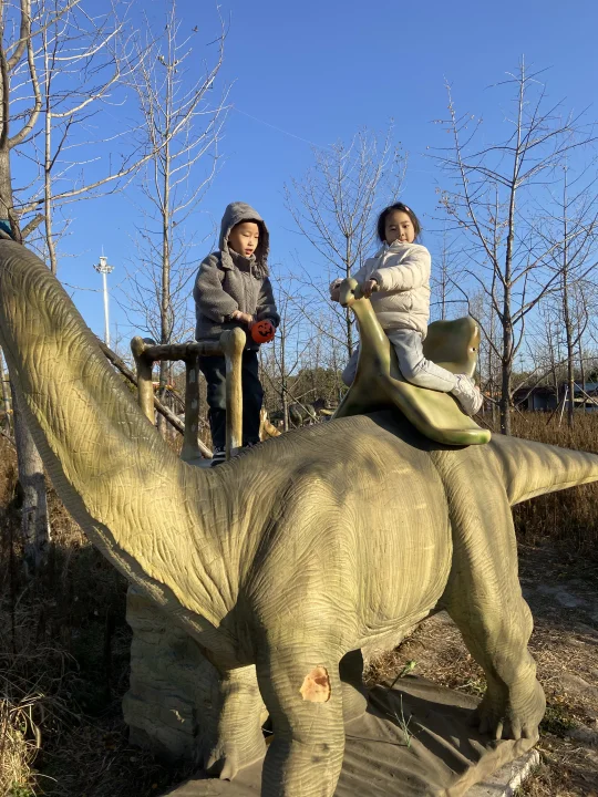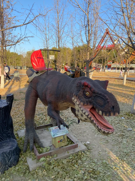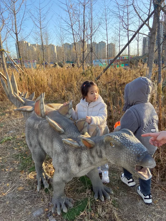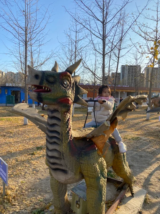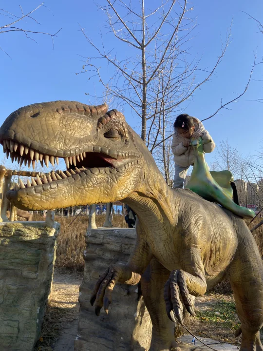 又发现了一个免费遛娃好去处[偷笑R] 沈阳丁香湖 东湖公园里,新建了一个免费的恐龙🦕乐园,恐龙能动,还会发出声音,而且还能免费骑!孩子玩的不亦乐乎。 恐龙园正好在一片银杏树下,今年冷的早,树叶都掉了,落在恐龙🦕周围,小火车路过的时候,拍照📸还挺好看的👀 备注:去恐龙园不去买票,直接进就行,公园里还有免费的儿童设施,滑梯秋千啥的,玩上小半天没问题。