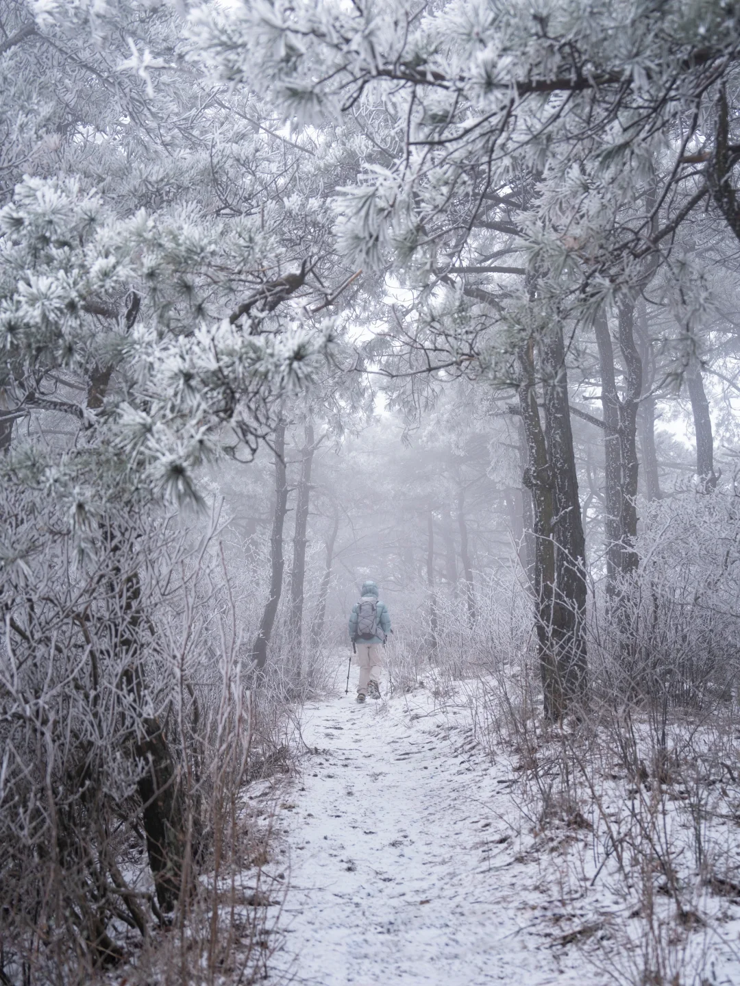 2️⃣离驿站1公里的台阶路上山,路程长,坡度缓,基本是走在树林中,风雪减半