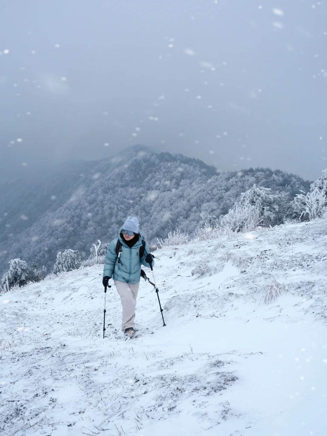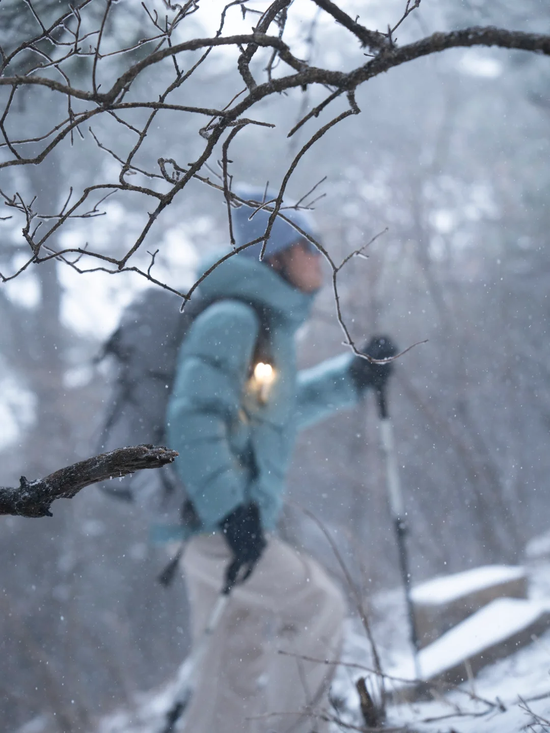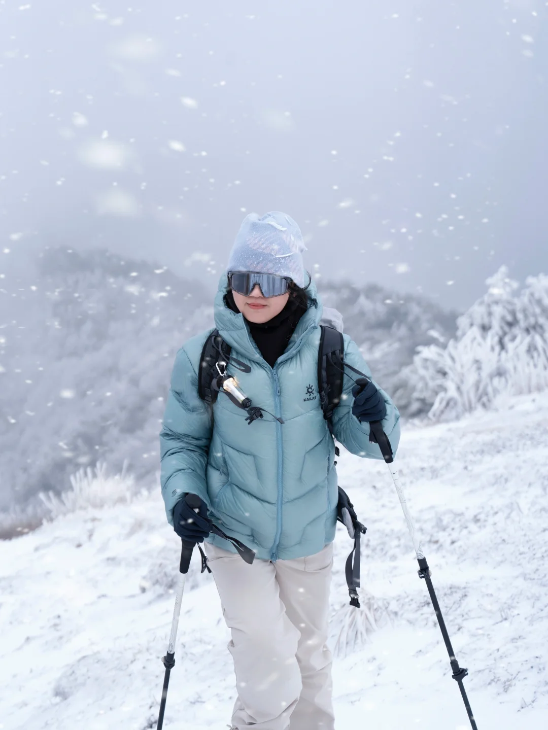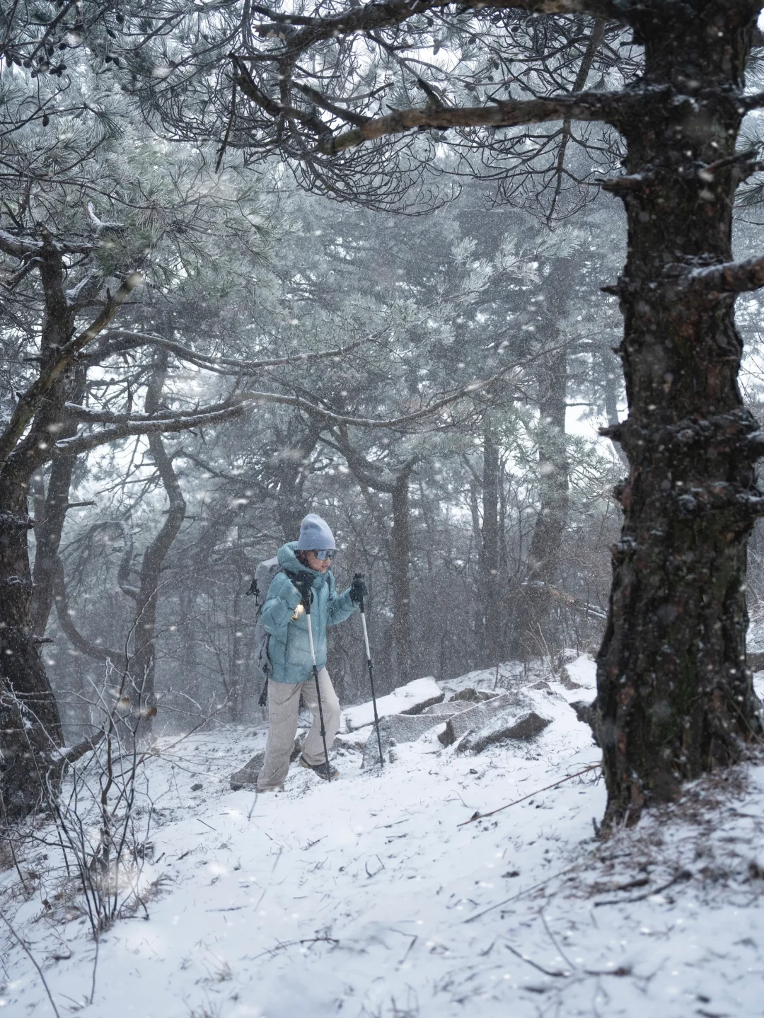 海拔越高,天气越不稳定,山顶大风6级起步,外层除了防风防雪的硬壳冲锋衣,也一定要做好保暖工作,