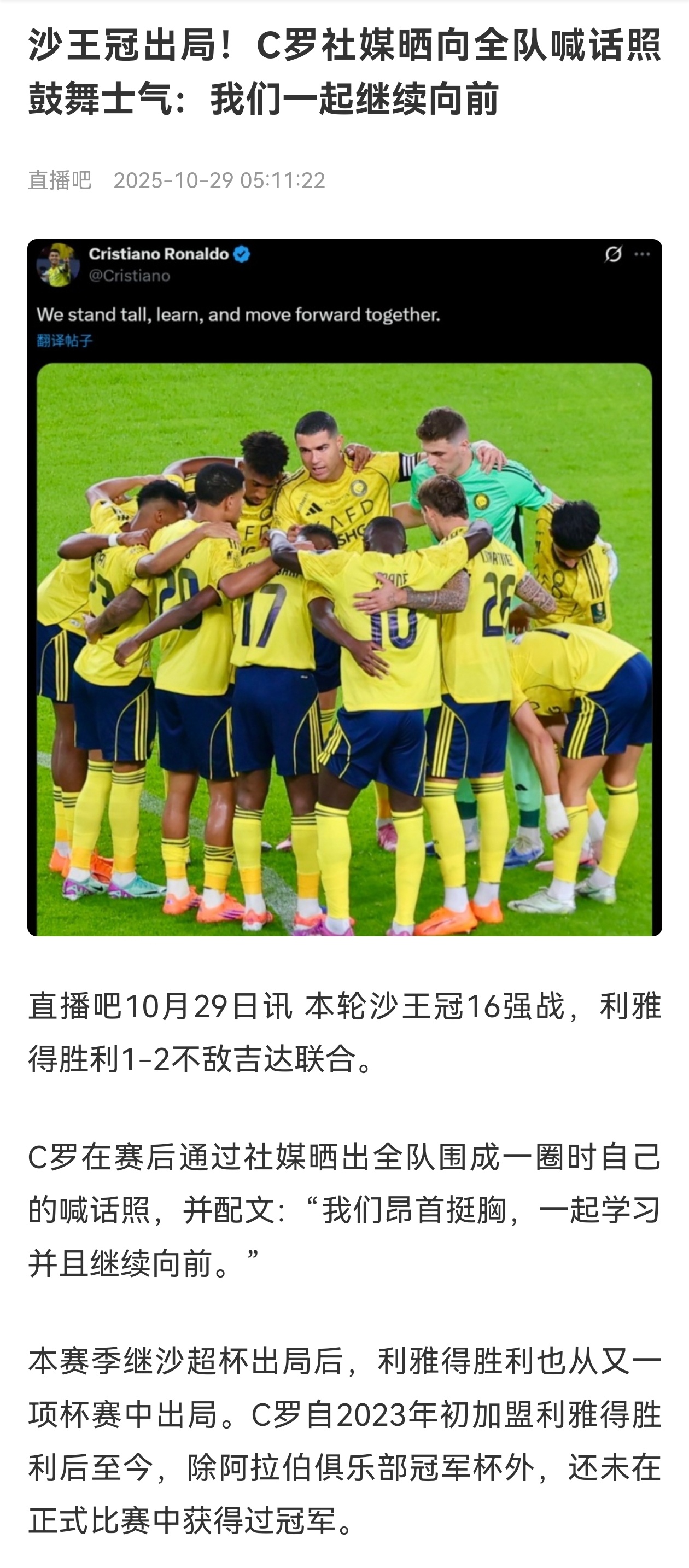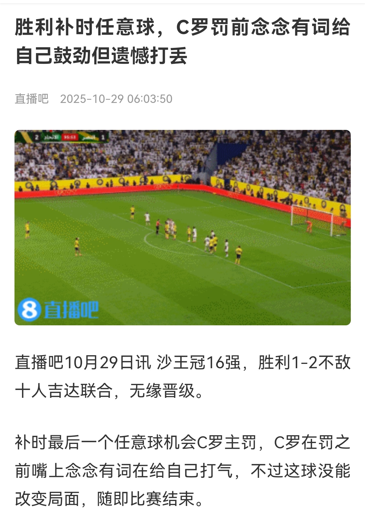 【结果不陪你演戏】💥利雅得胜利1比2吉达联合利雅得胜利止步沙王冠16强,罗哥赛