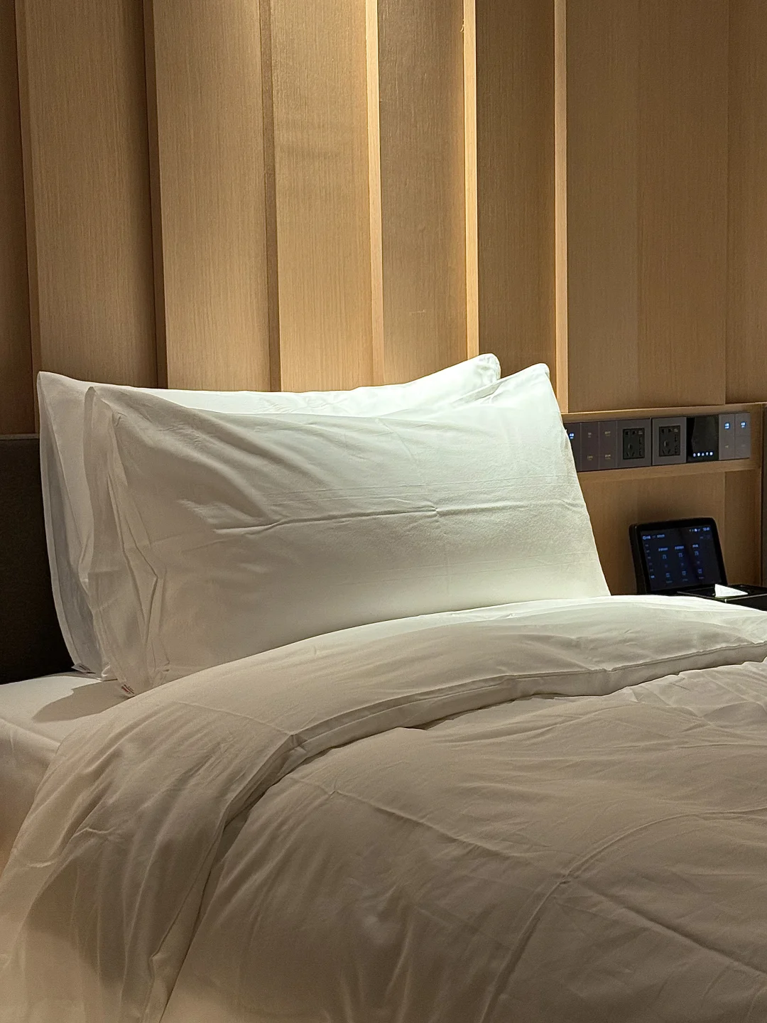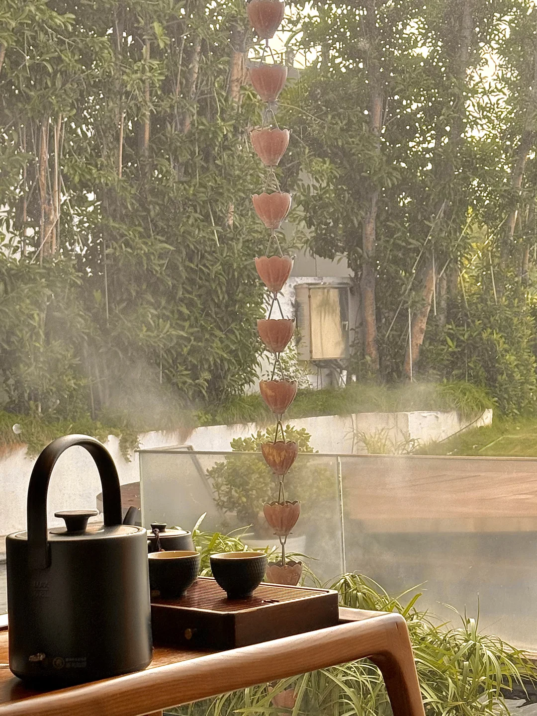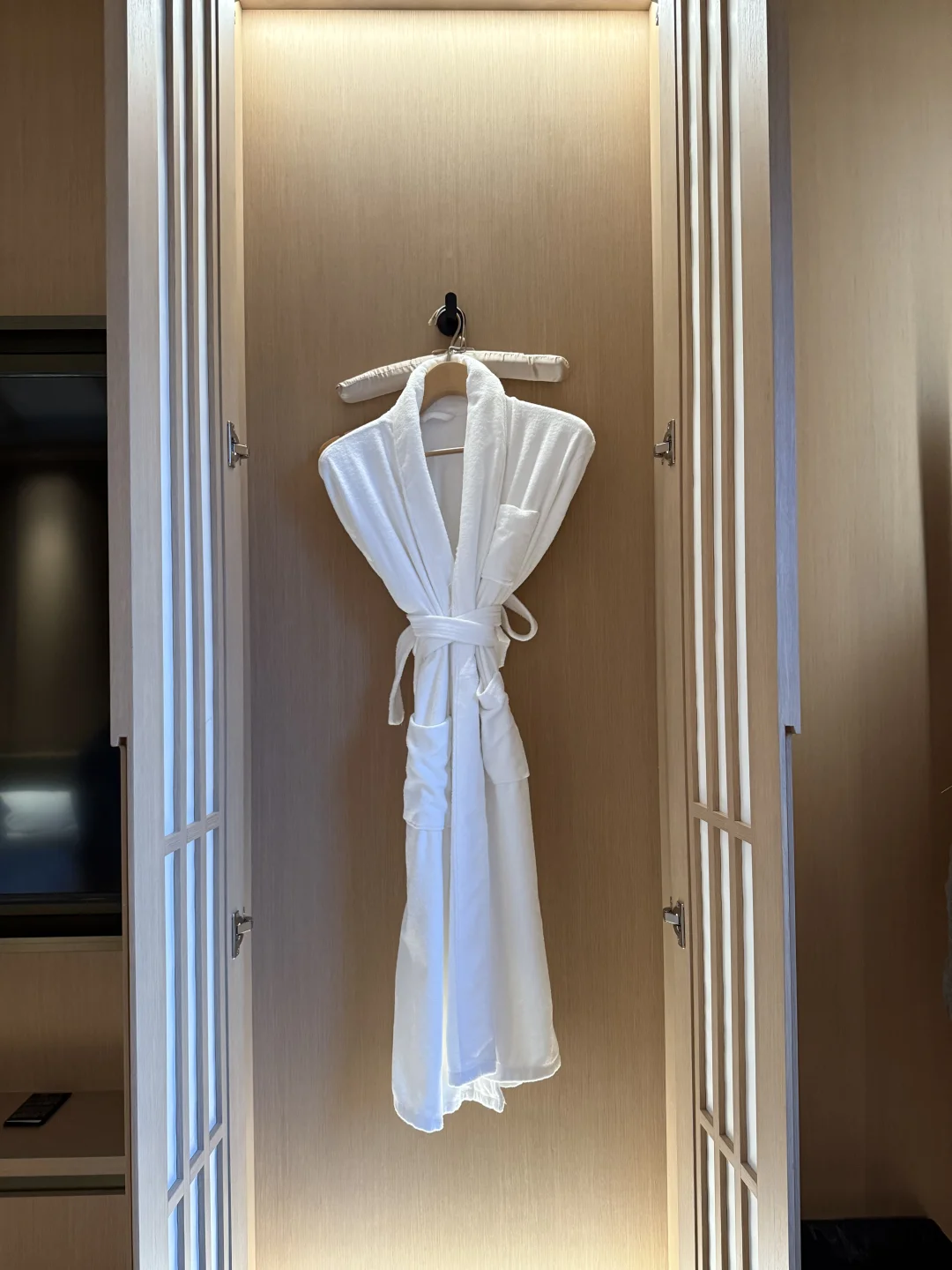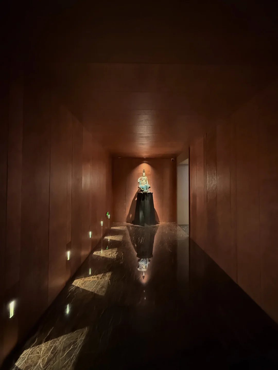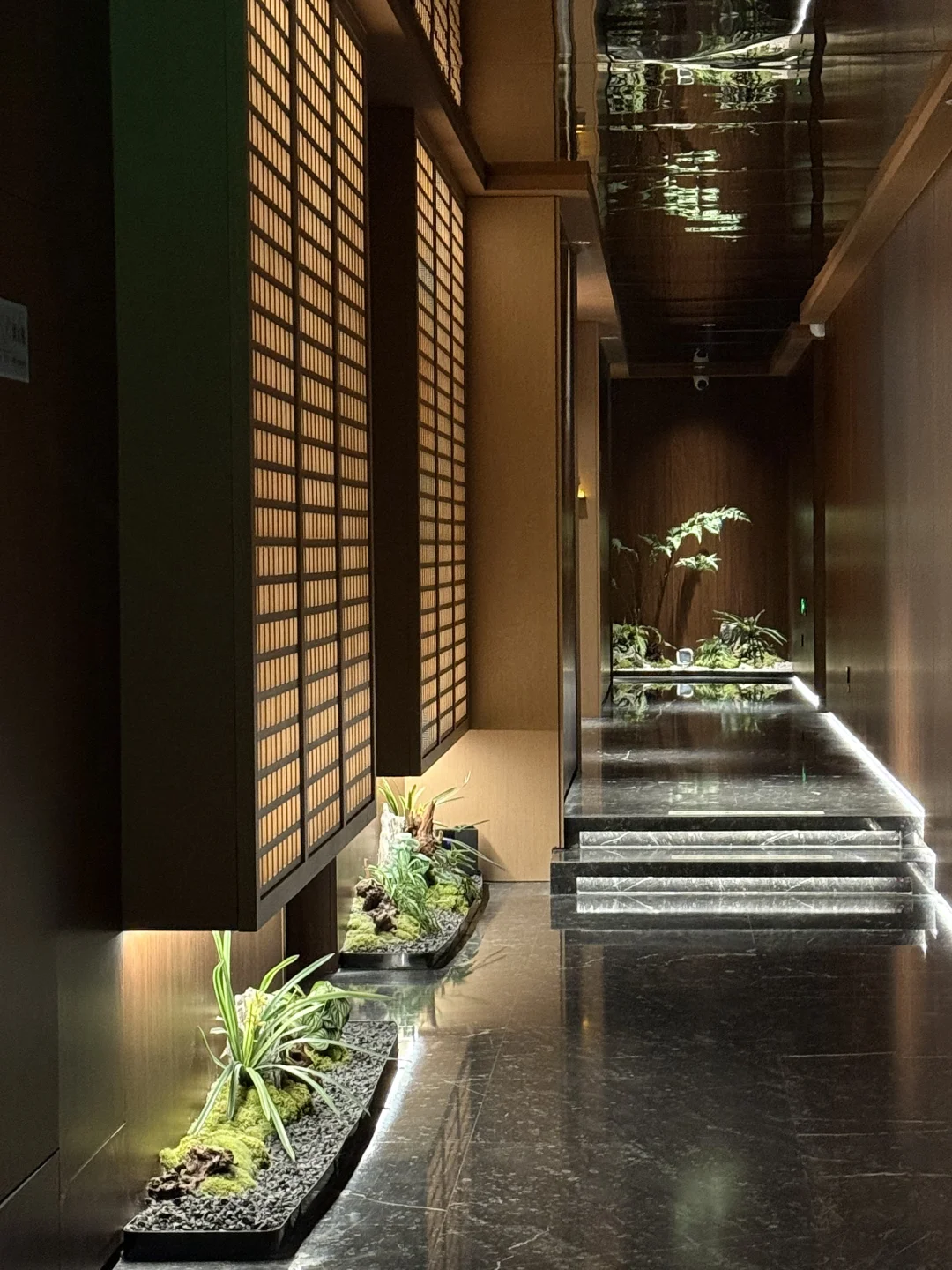 园林设计也花了心思,翠竹掩映,石径通幽。门口的锦鲤池中,数十尾红鲤悠然游弋,更添静谧与禅意。房间天然竹材的运用营造出清新通透感。全套汉斯格雅卫浴和戴森吹风机,帕尔玛之水。全屋小度智能调控舒适度Max!!最令人惊喜的是,从房间窗户便能望见南海观音大佛,早上日出在观音菩萨身后升起 ,大光明的即视感,很震撼🙏