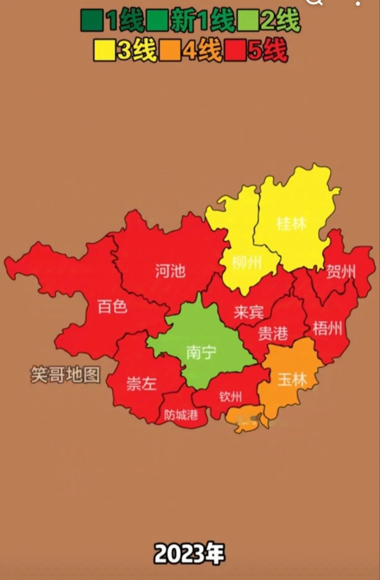 广东、广西、湖南、湖北、江西、福建六省各城市等级划分简图,一目了然,值得收藏。