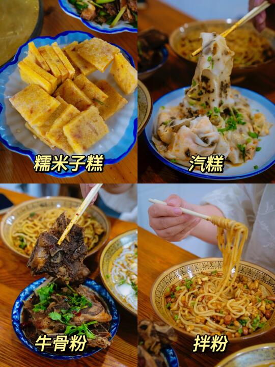 早餐一碗特色牛骨米粉,再来份糯叽叽的糯米子糕和汽糕,幸福感爆棚