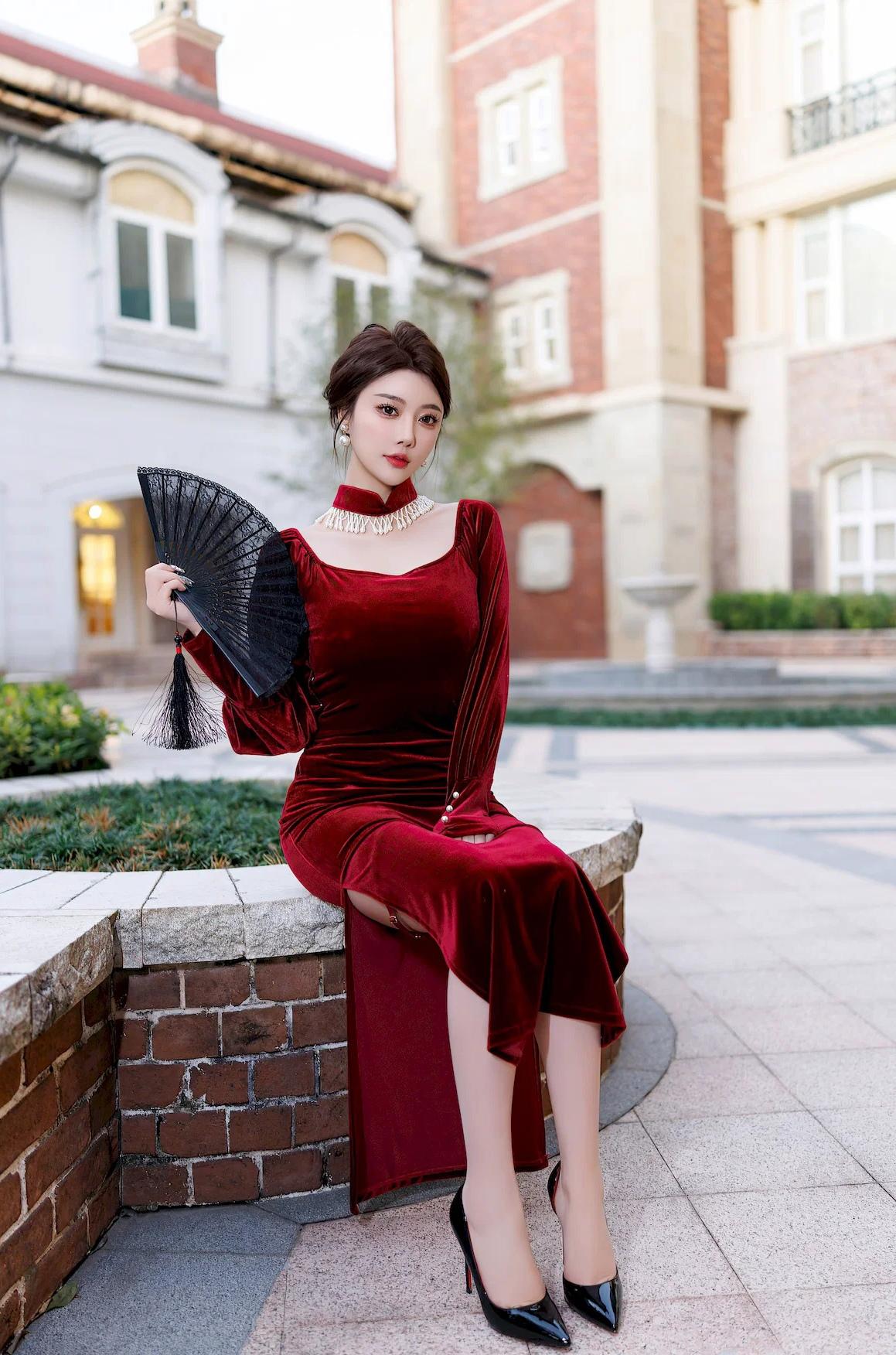 气质这块拿捏到位,红色的旗袍端庄感性什么样的美女才是最美的呢气质美女 很美的美女 温婉大方的美女 楚楚动人美女 高跟丝袜 丝袜美女