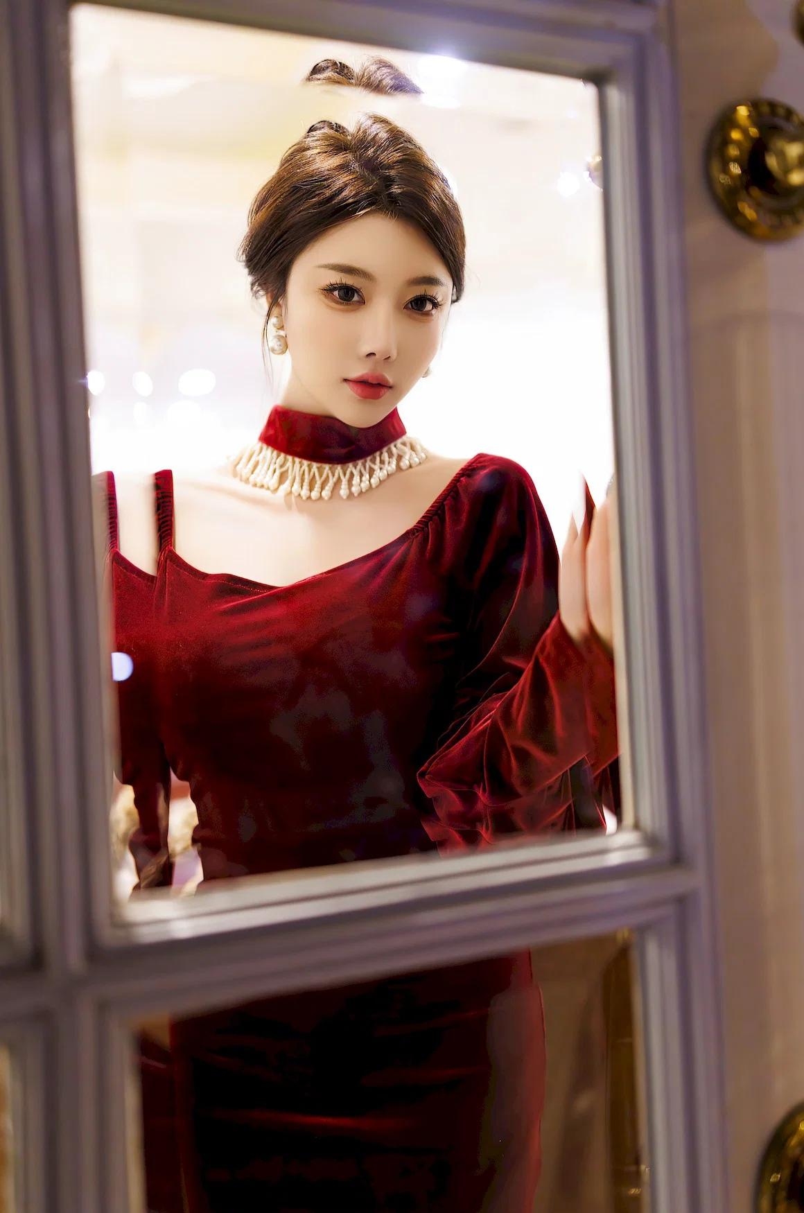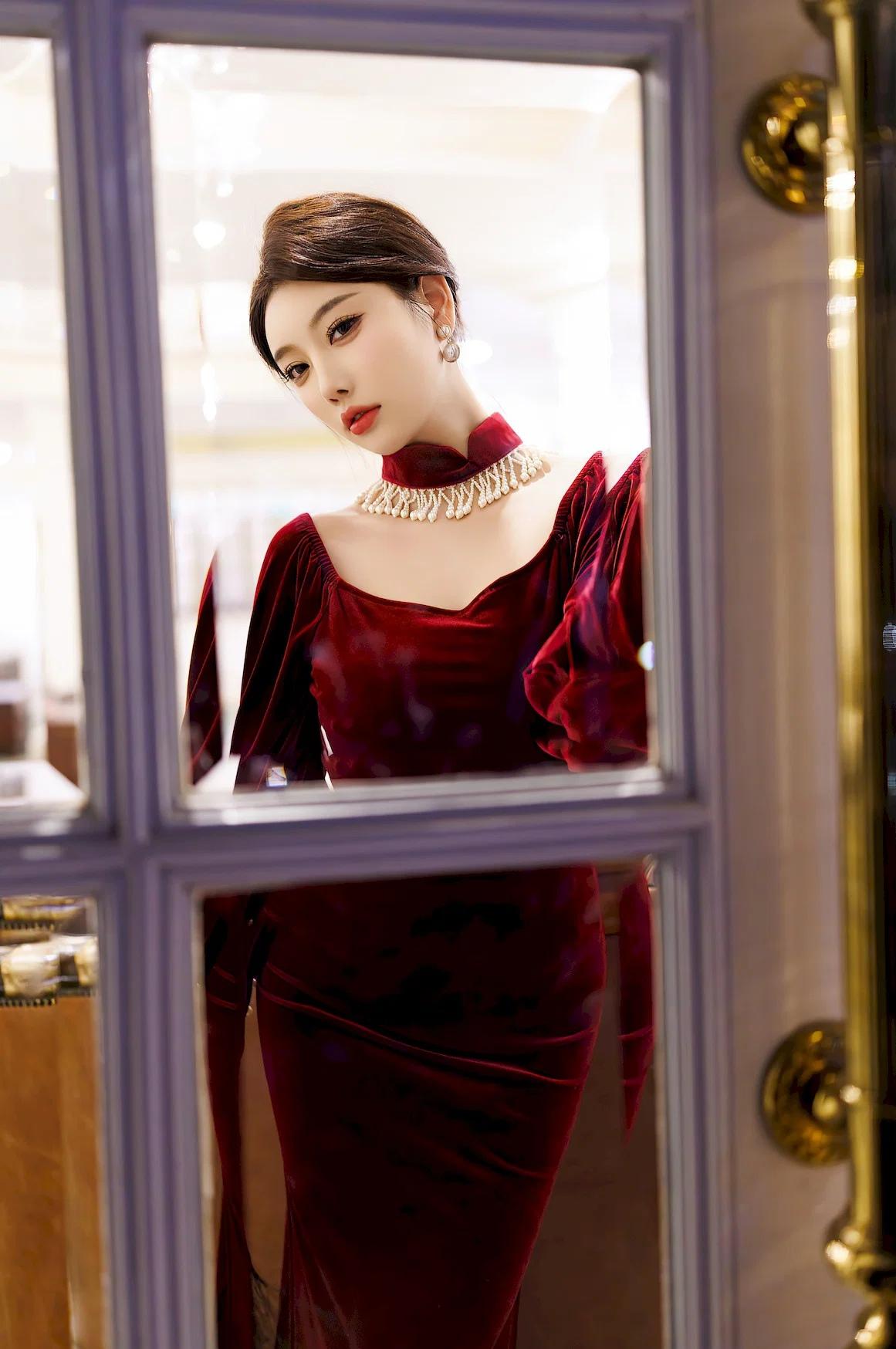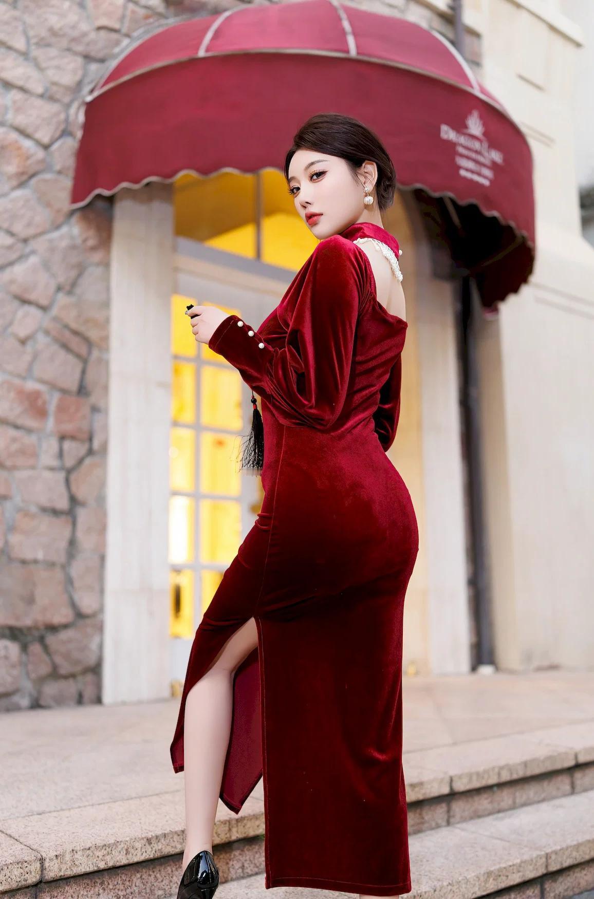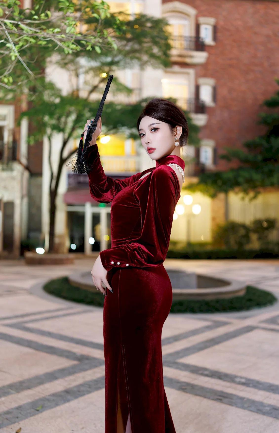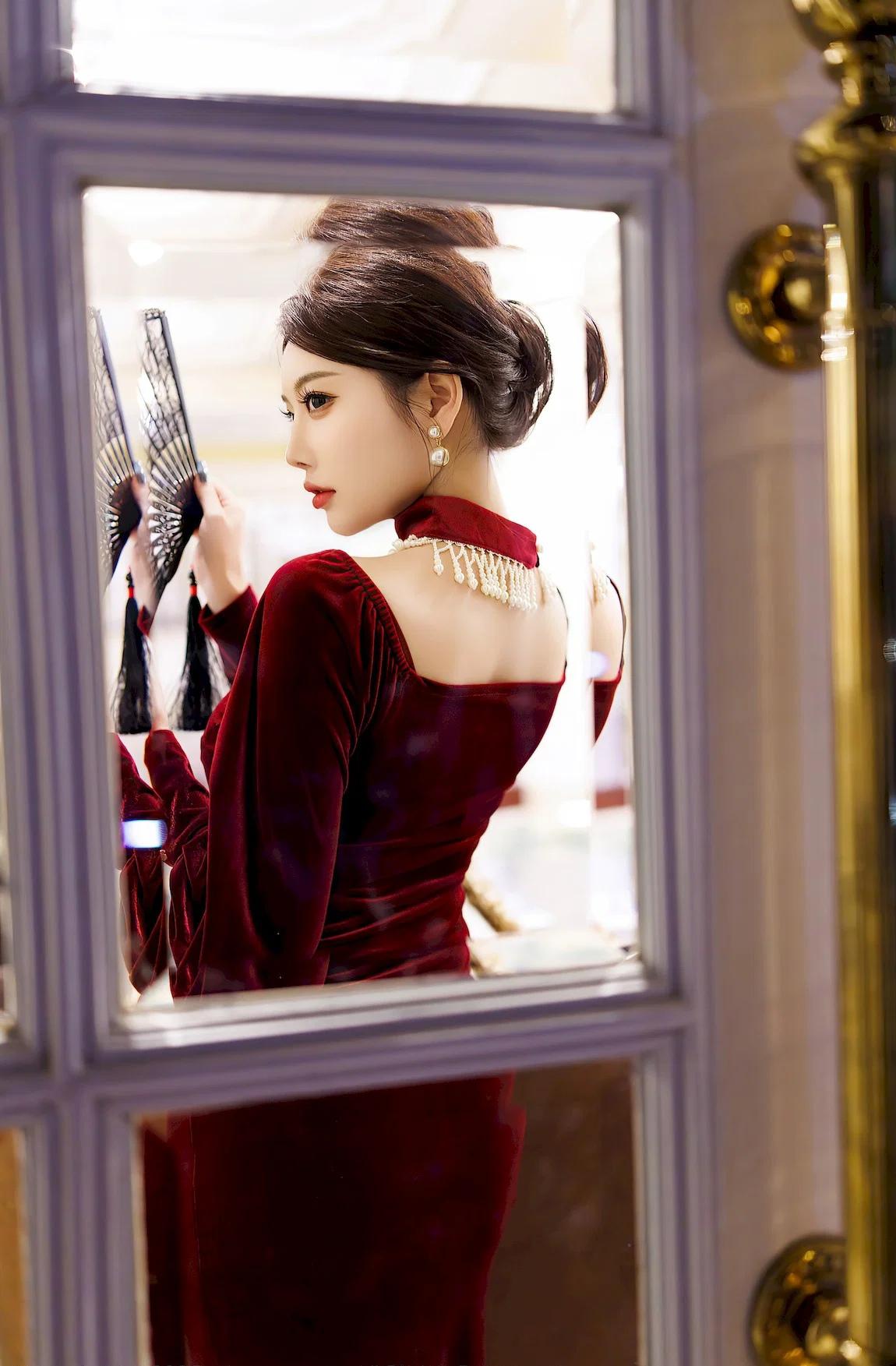 气质这块拿捏到位,红色的旗袍端庄感性什么样的美女才是最美的呢气质美女 很美的美女
