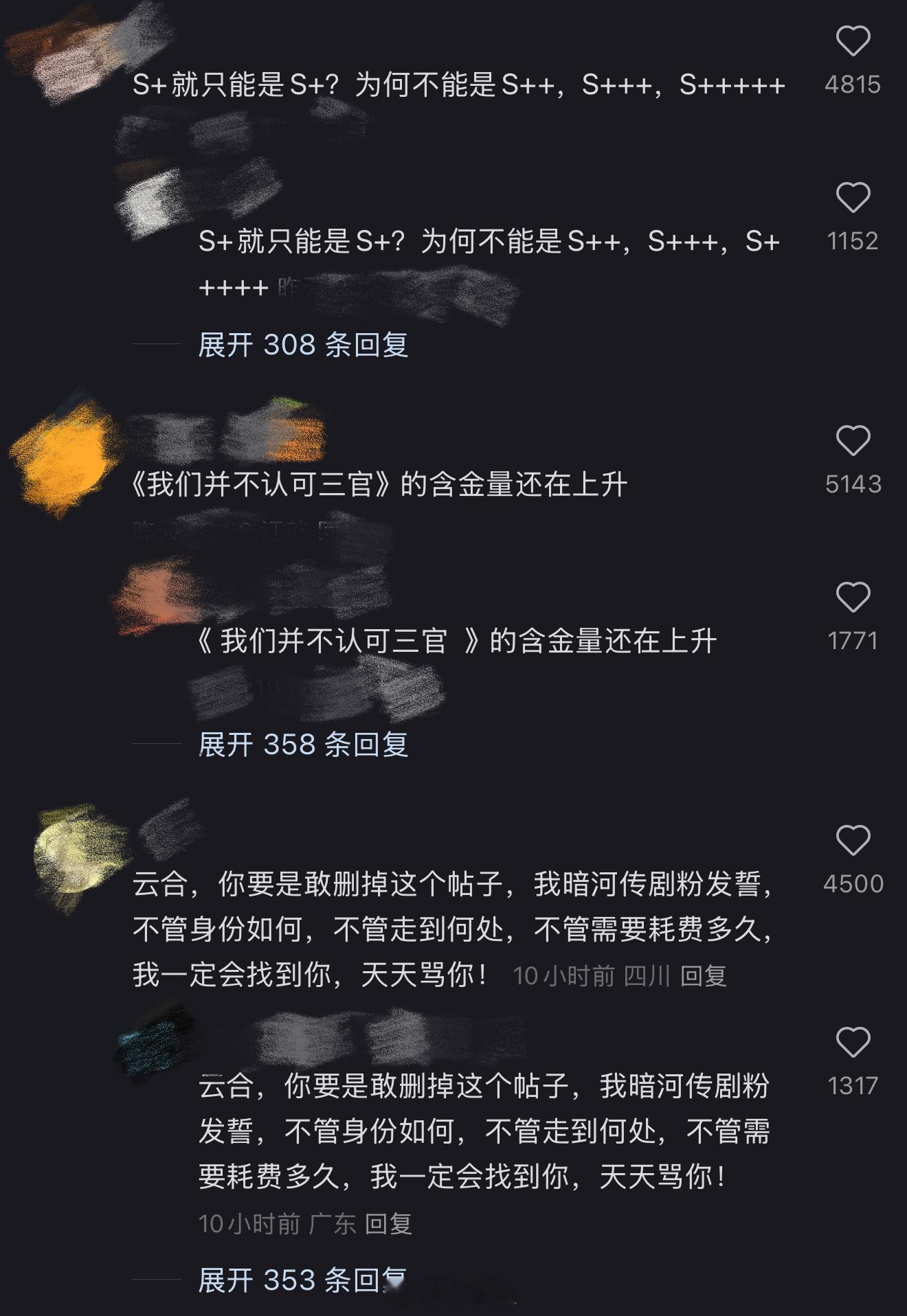暗河传 云合评论区云合给《暗河传》评S+,剧粉都来“辩经”!打戏利落、名场面多,大家都觉得该有更高评级,怕好剧被埋没!