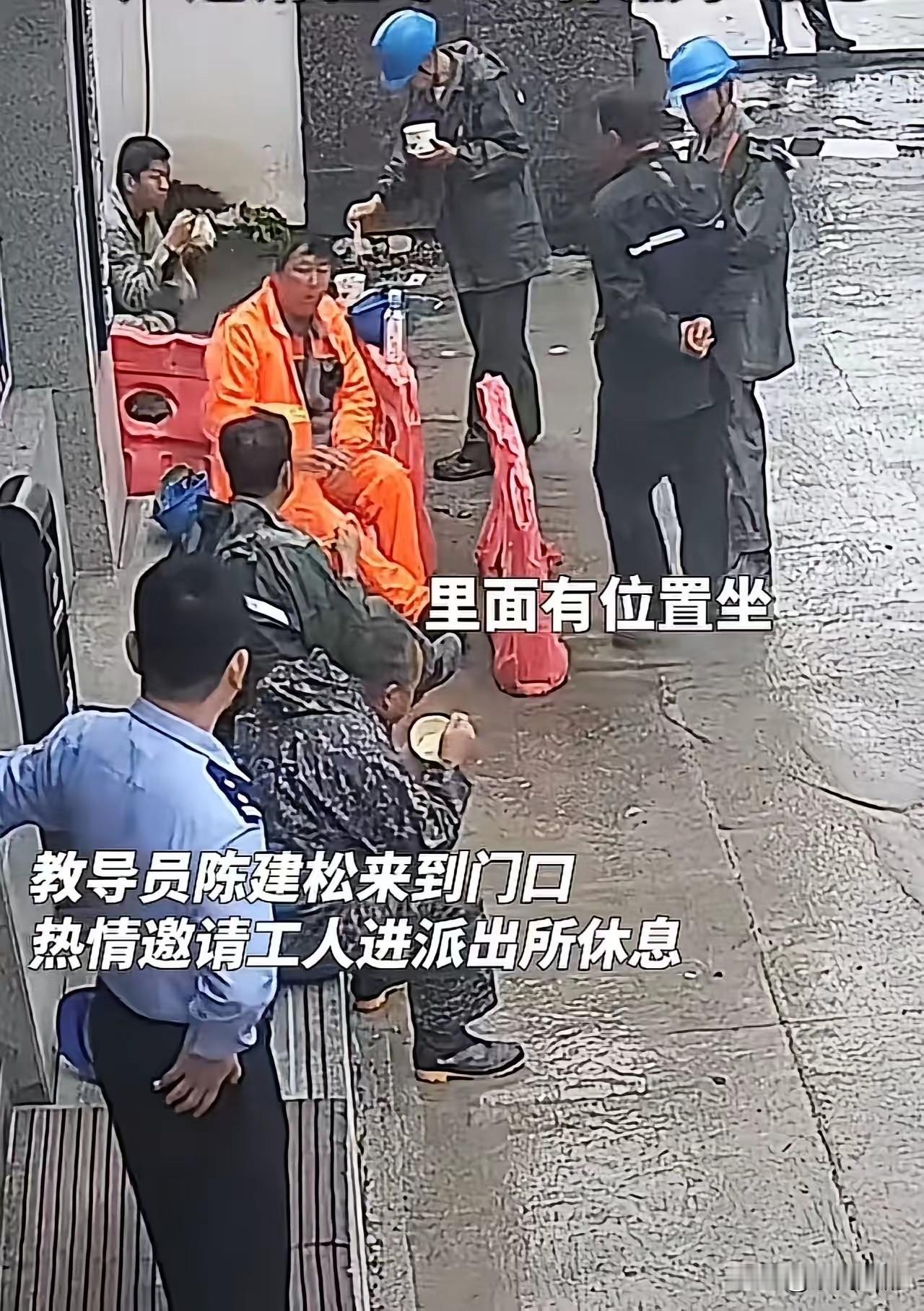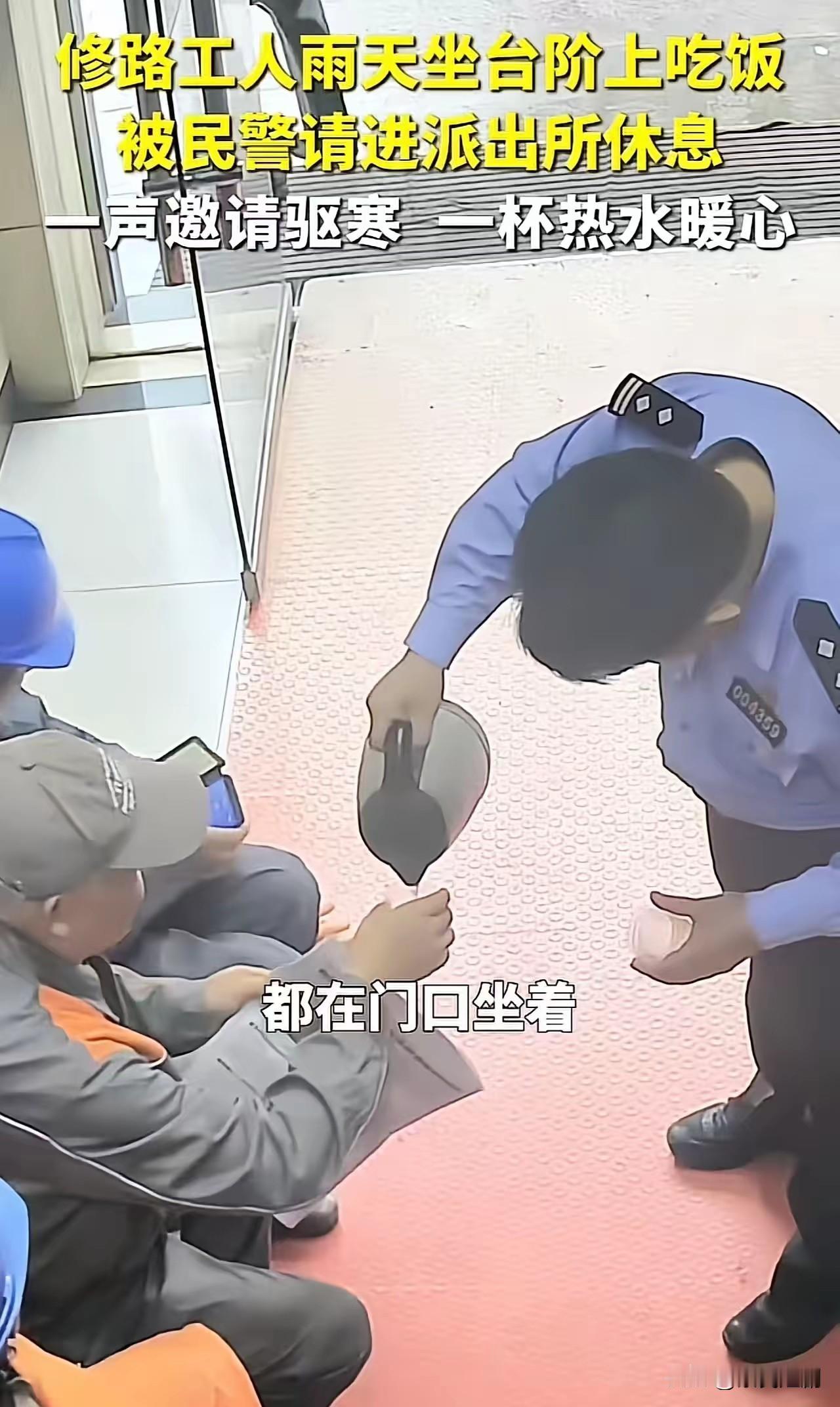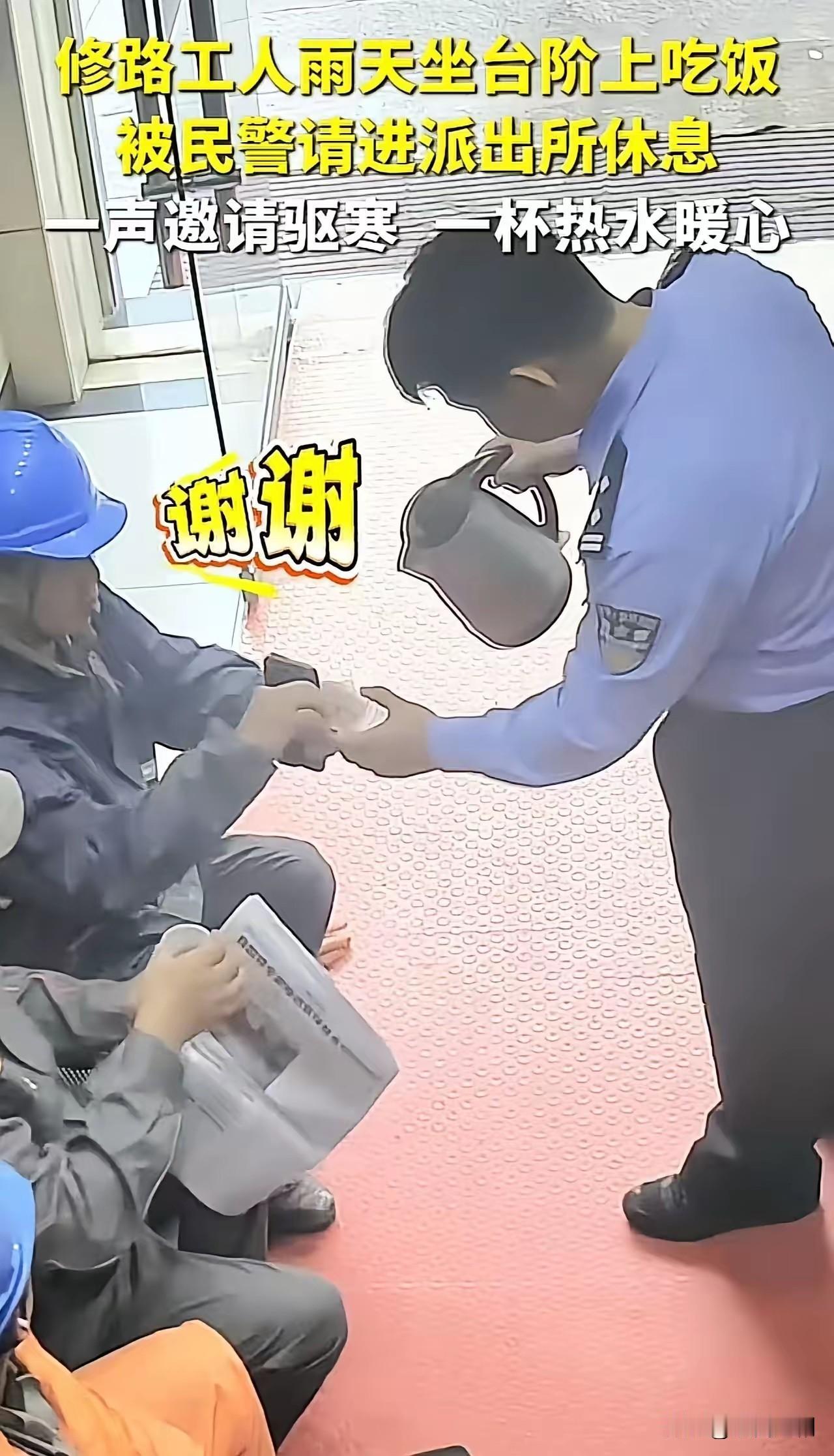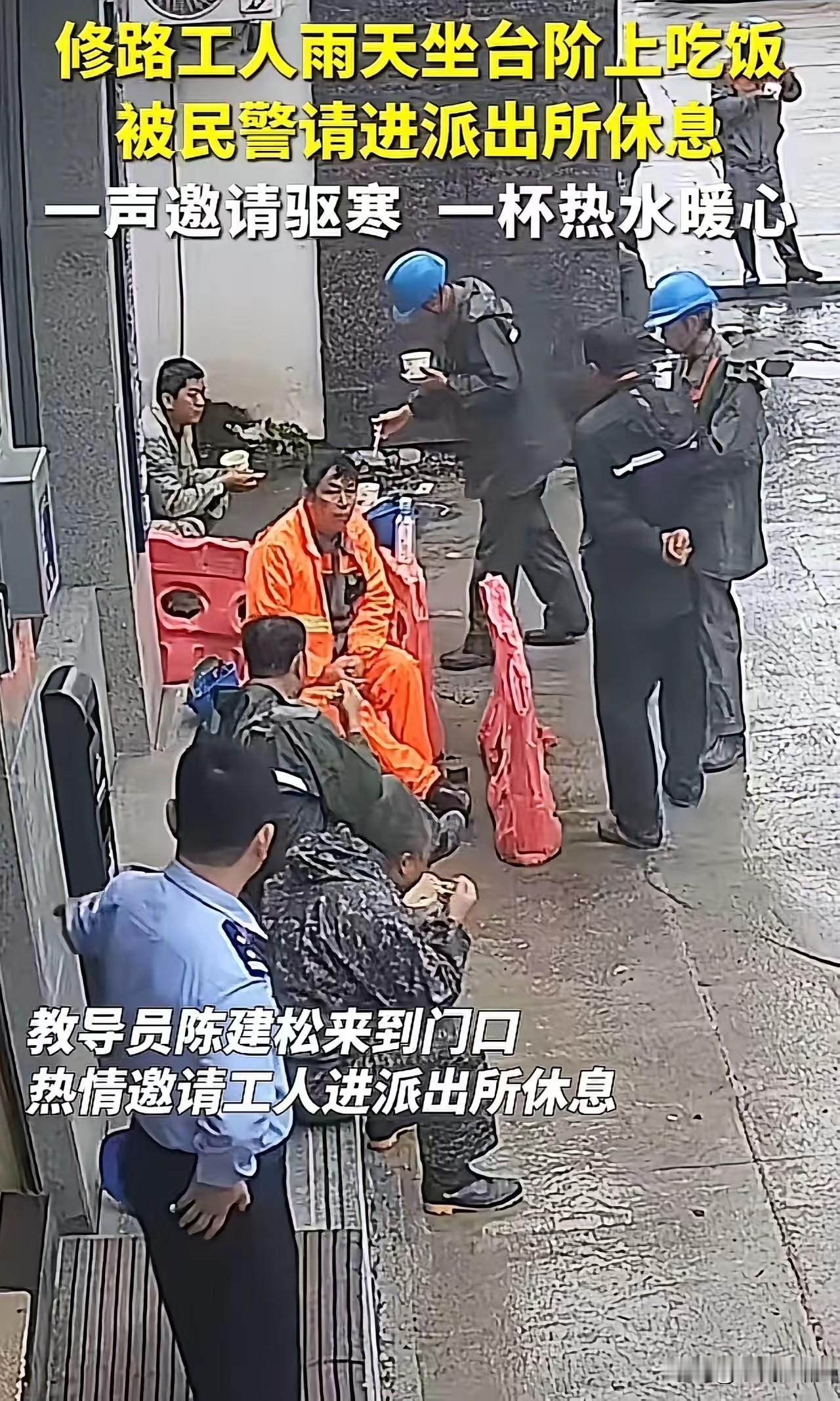 这件事在网络上引发了广泛关注与热议,也让人们再度体会到基层民警的温暖与善良。在湖北黄石,一群修路工人雨天为避雨,坐在派出所门口台阶上吃饭,这本是个寻常场景,却因民警的善意变得格外温馨。 民警看到工人们在雨中艰难地坐在外面,或许是出于关心与同情,主动走上前,邀请他们“里面坐”。这一简单举动,彰显了民警对群众的关怀与贴心,也打破了“警察只是执法者”的传统单一印象。民警的善意,让工人们感到温暖,也让围观网友感受到正能量。 当今社会,警察除维护治安、执行法律外,更应成为群众的贴心人。这个故事便是最佳例证。民警没有以威严或冷漠对待普通工人,而是用关怀与体贴为他们带去温暖。这样的细节,折射出基层民警的责任感与人性光辉,也让人们看到警察职业最温暖的一面。 此事经人民日报报道后,迅速在网络上传播,赢得广大网友点赞。有人说:“民警不仅守护城市安全,还守护人心温暖。”也有人感慨:“在快节奏、压力大的社会,能遇到如此善良、贴心的民警,真是社会正能量。”这不仅是件暖心事,更是一面镜子,映照出社会中善良、互助的美好品质。 其实,生活中类似的善意与温暖并不鲜见。只要每个人多些关心与体贴,社会就能变得更温暖和谐。民警的善意提醒我们,人与人之间的关心与理解,是社会文明的重要体现。无论身份、职业、背景如何,善意与温暖都能拉近人与人的距离,增进彼此信任与感情。 这件事虽是个小细节,却让人感受到大温暖。它告诉我们,善良是社会最宝贵的财富,也是推动社会前进的力量。希望未来有更多这样的故事,让社会充满爱与温暖。每个普通人、每位民警,都能用行动传递温暖,让世界更美好。
