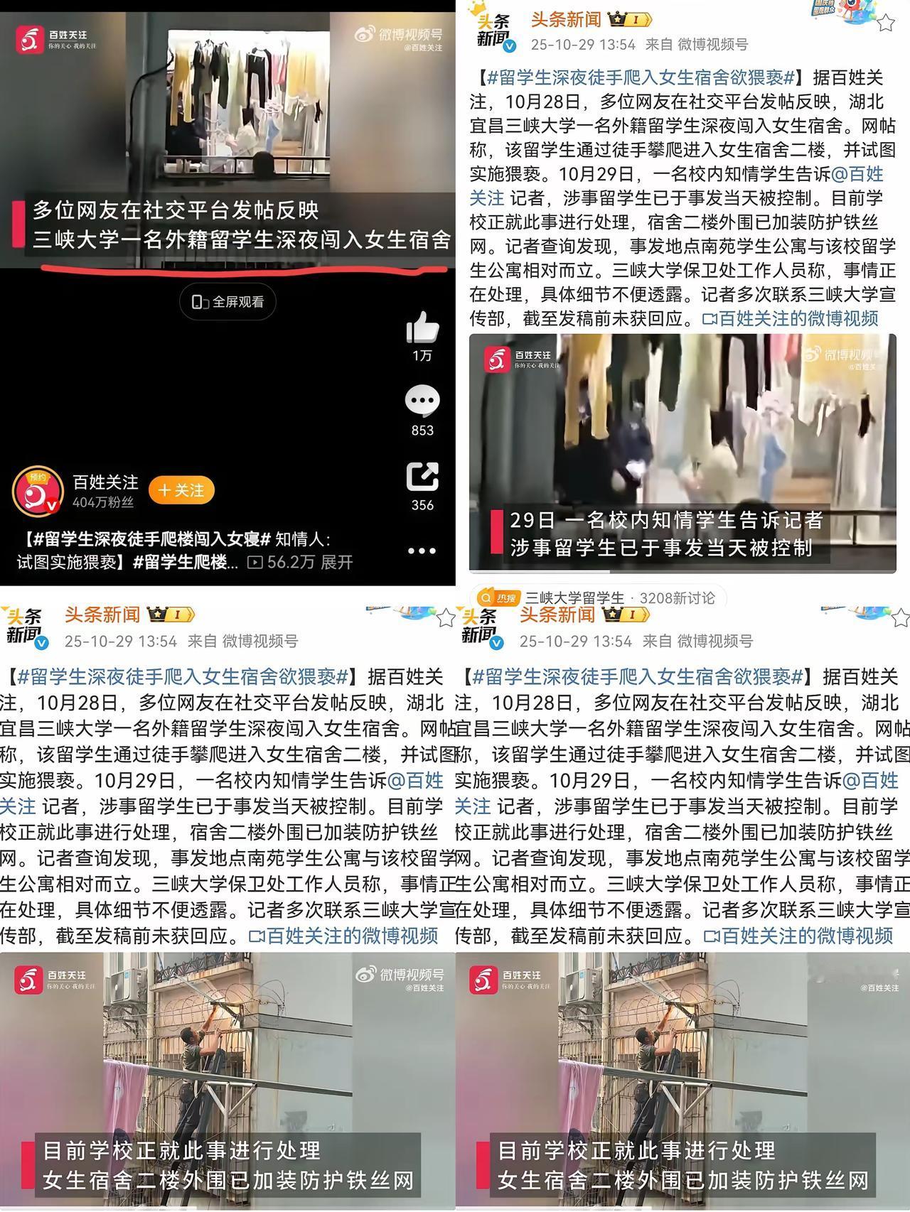 全网愤怒,确认了被刑拘! 外籍学生深夜闯女生宿舍实施猥亵 25日深夜,某大学一名外籍学生竟徒手攀爬至二楼女生宿舍,对屋内女学生实施猥亵。万幸的是,女生奋力反抗并大声呼救,才阻止了更恶劣的后果发生,侥幸脱险。 目前该学生虽已被控制,但学校迟迟未公布处理结果,引发全网不满。经记者多次电话核实,确认其已被警方依法刑拘。 引进外籍学生的门槛高低,大家心中自有评判。可谁请来的“大爷”,就该谁负责带回!我们的校园是教书育人的净土,不是纵容恶行的地方,绝不能让外来恶徒祸害老百姓的孩子!必须严惩不贷,以儆效尤!