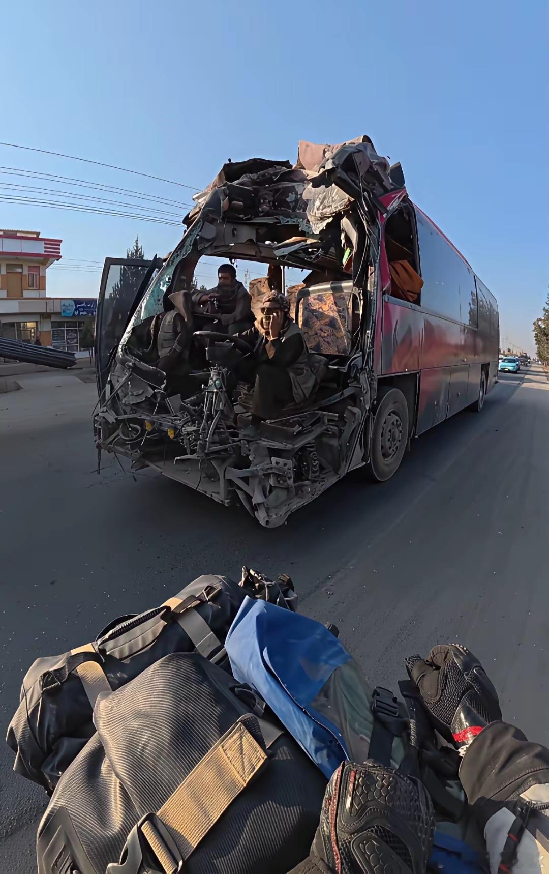 一名意大利旅行博主在阿富汗公路上看到这辆大巴车,被吓到的博主赶紧拍个照留存。 难怪这里是“帝国坟场”,当地人都是狠角色[允悲]