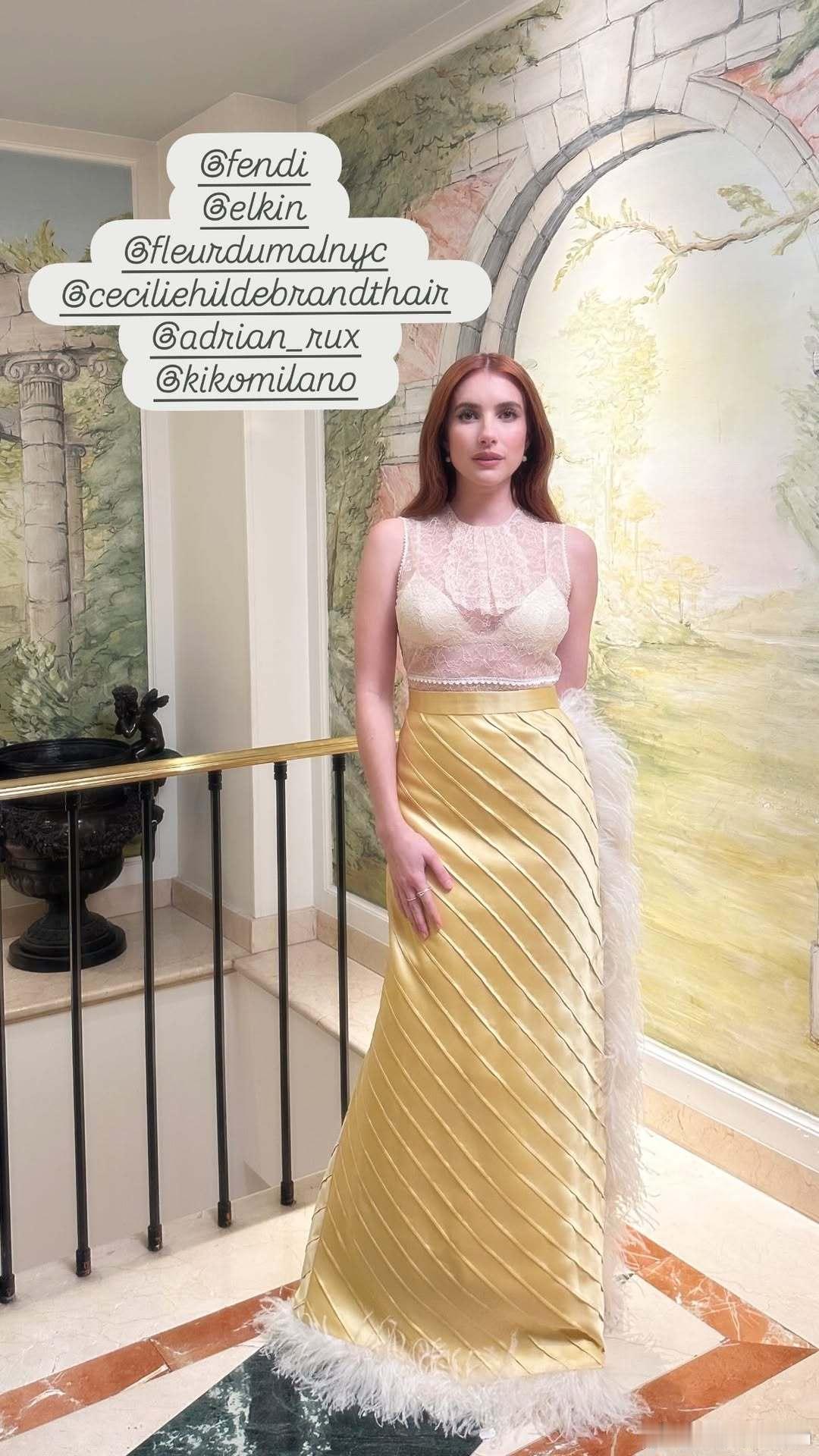 EmmaRoberts艾玛罗伯茨昨日份造型细节,这身像摆置在蛋糕上的娃娃