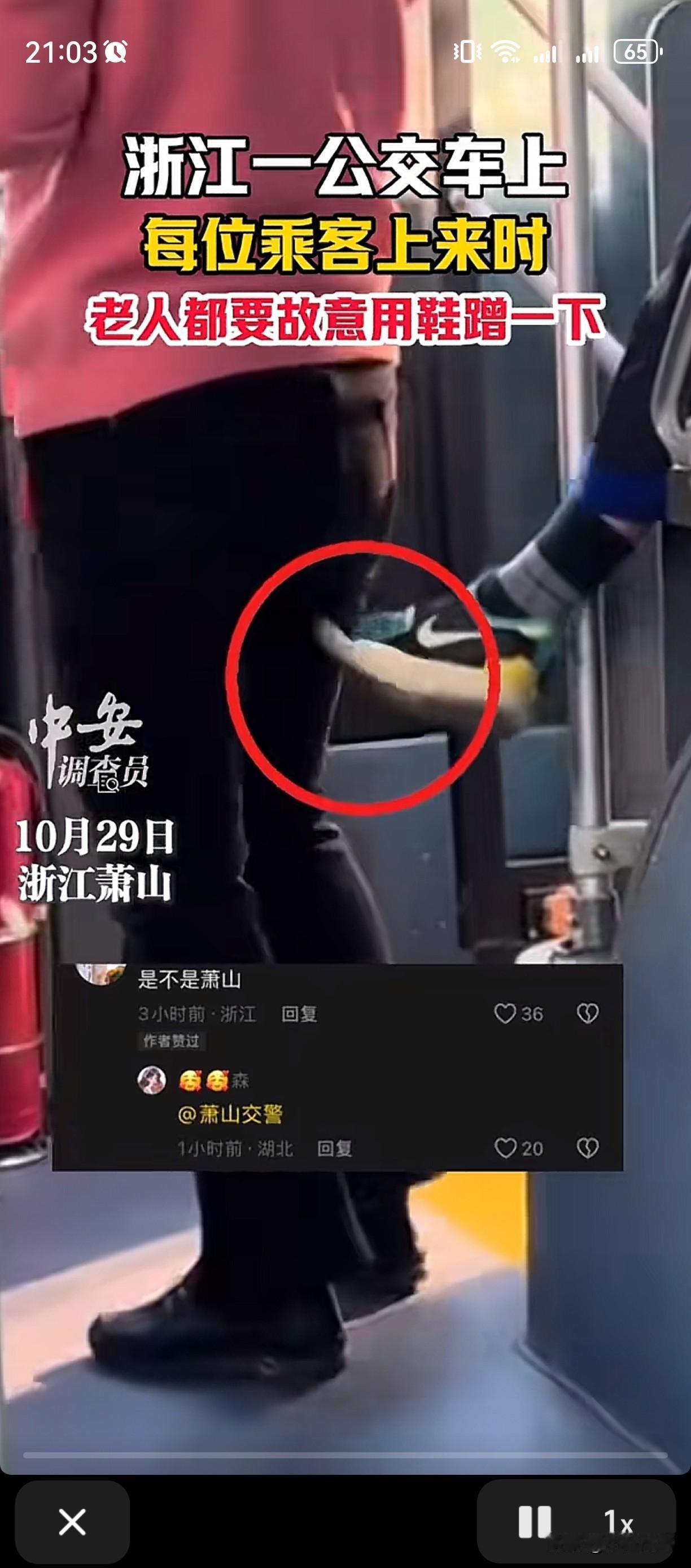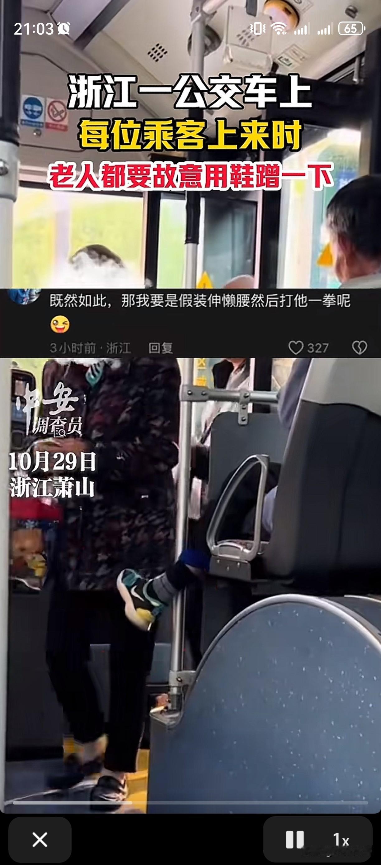 你就说气人不。 10月29日,浙江萧山的一辆公交车上发生了令人气愤的一幕,一位