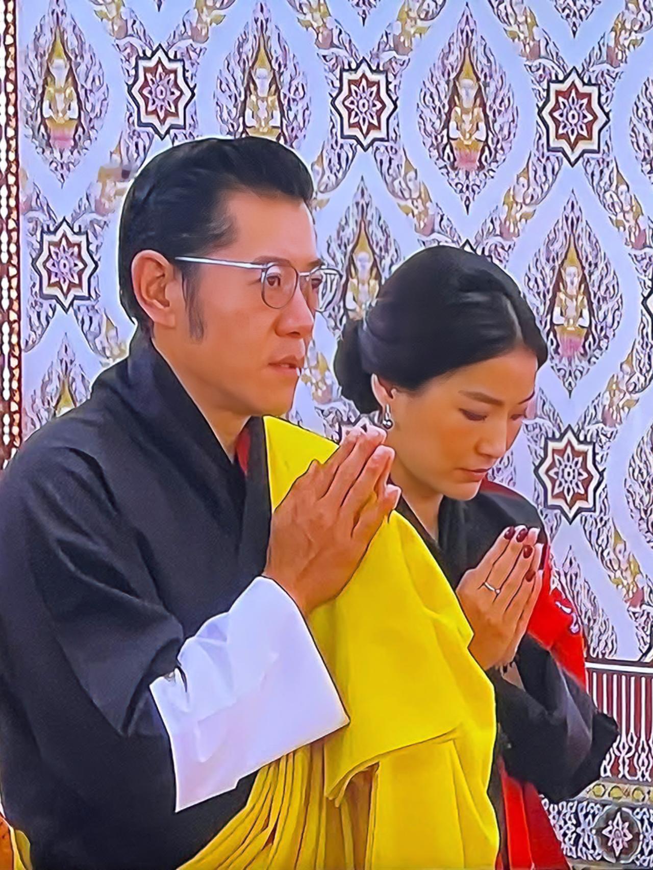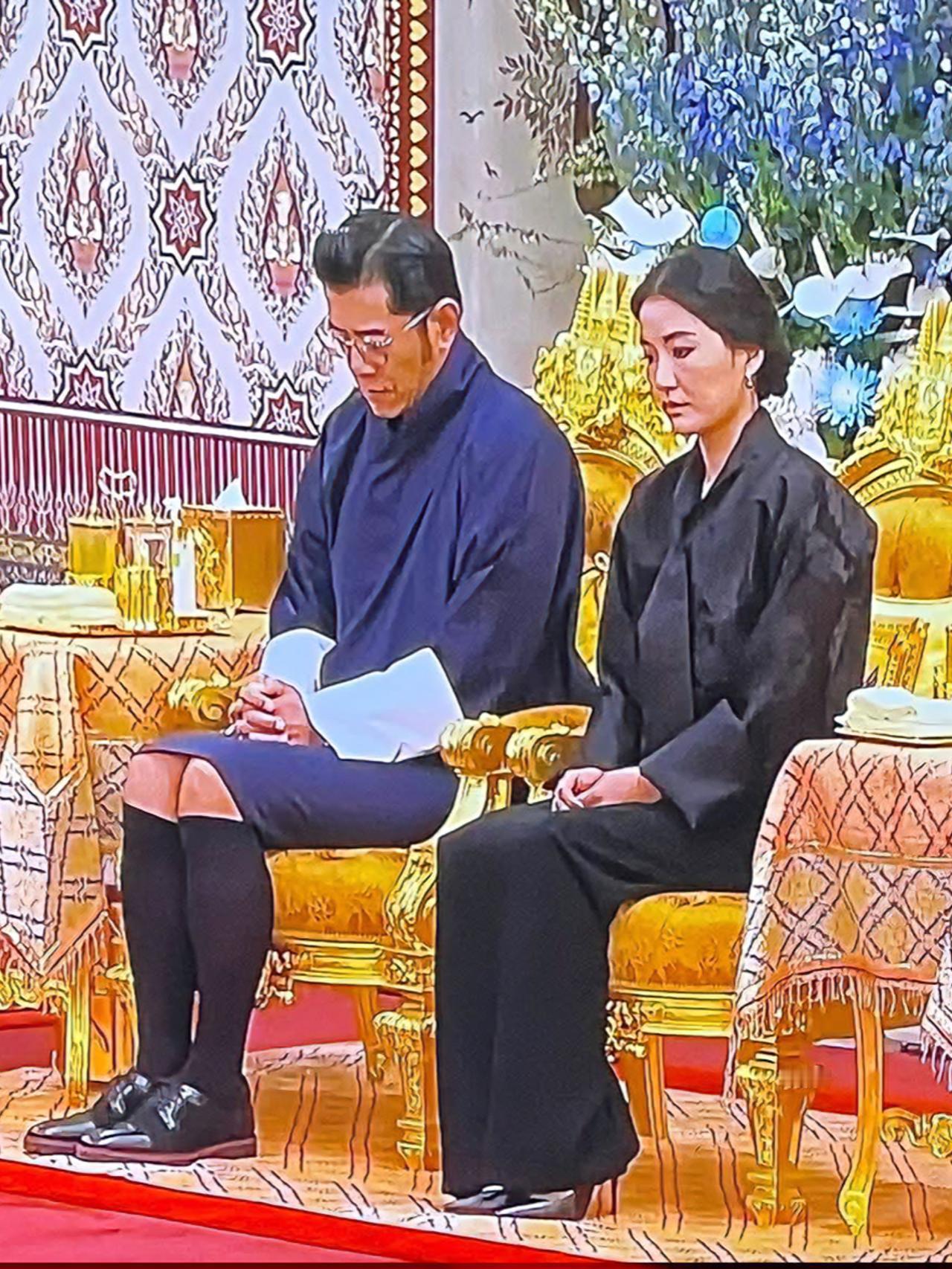 苏提达王后生图曝光,面色憔悴变沧桑 泰国国葬日第四天,泰王携苏提达、诗妮娜和思蕊梵出席祈福仪式,场面庄重。不丹国王夫妇也专程远道而来,送诗丽吉太后最后一程,尽显情谊。而苏提达的生图流出,没了精修的精致,面色憔悴,整个人状态与精修照差距明显,让人不禁感慨。