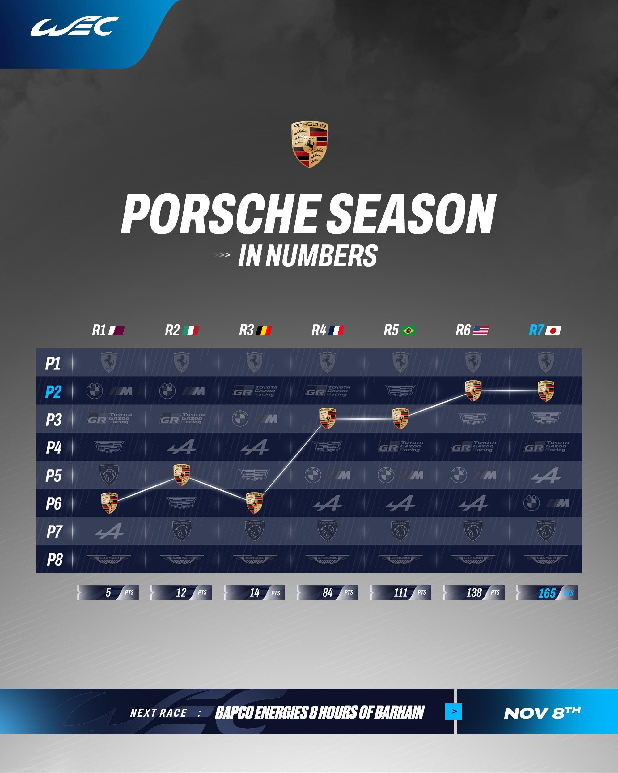 3️⃣ 保时捷今年则是低开高走,勒芒上大分后表现越发出色,在COTA也实现了赛季首胜,尽管目前落后领先者39分,但他们在巴林应该还能够延续出色的表现,只是在争取靠前名次之余他们还需要寄望法拉利继续低迷。