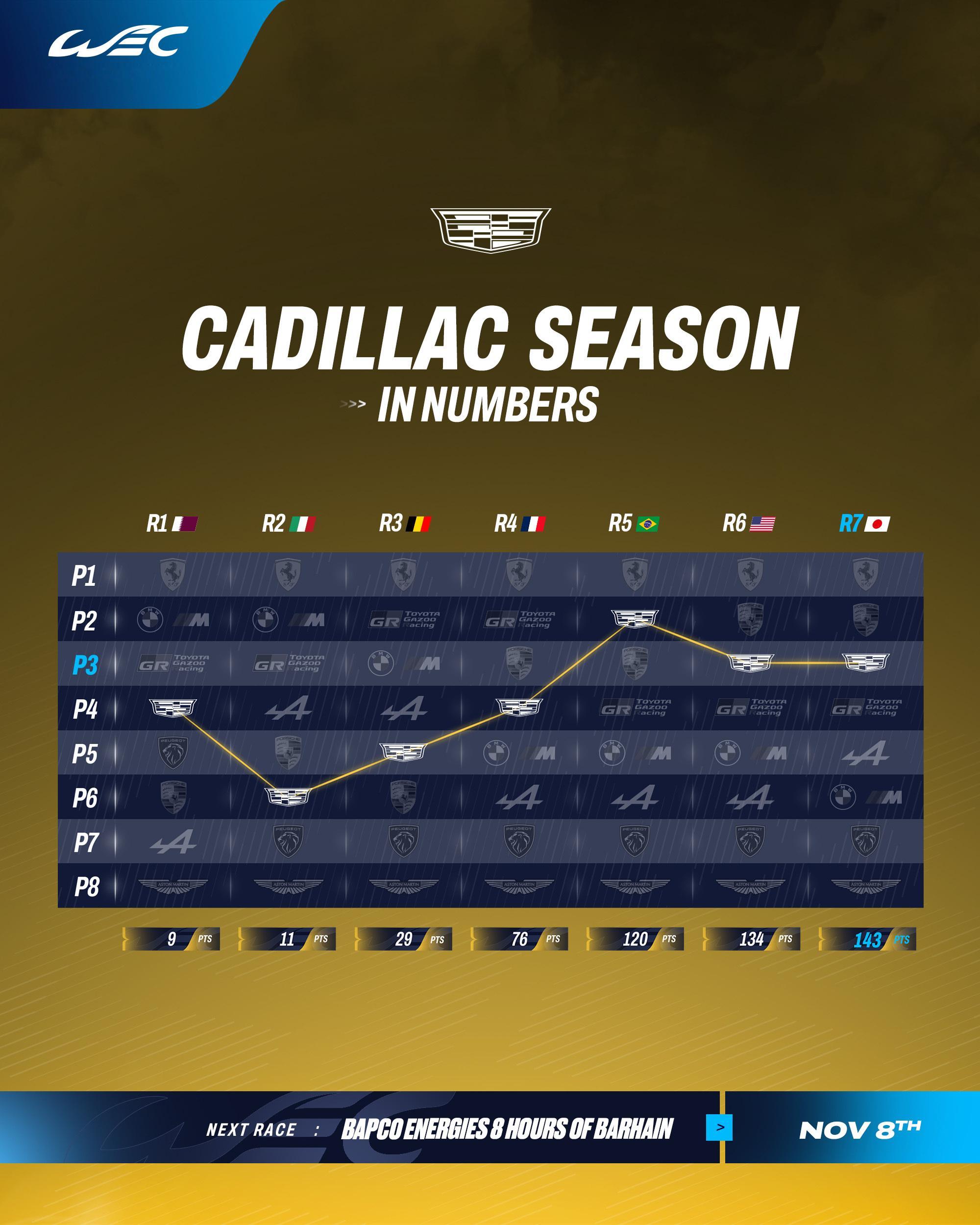 4️⃣ 凯迪拉克本赛季的速度让人印象深刻,3个分站夺得杆位是今年所有制造商里最多的存在。当然,他们想在巴林实现大逆转可以说需要奇迹的出现,但毕竟比赛还没跑,所以还是Never say never,反正,干就完了!