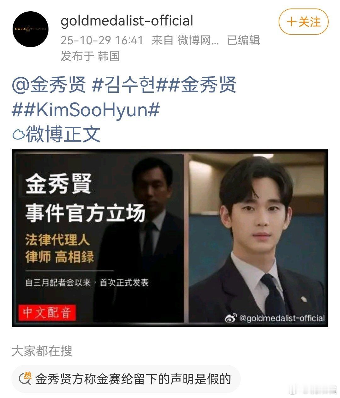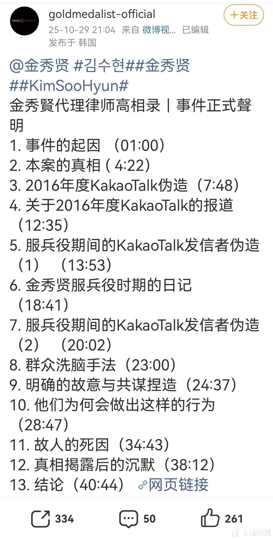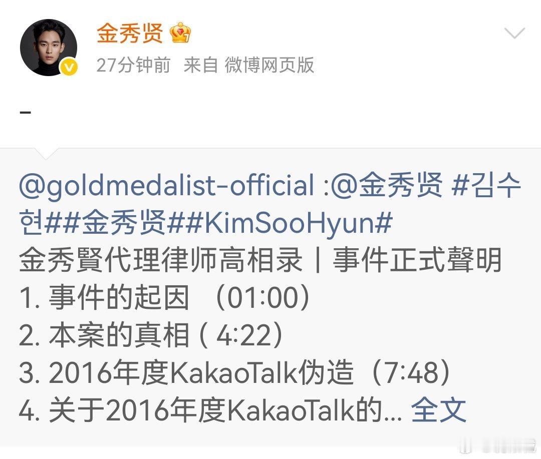 金秀贤发博了时隔多年的微博更新,没有多余文字,只有一条43分钟的多语言律师声明视