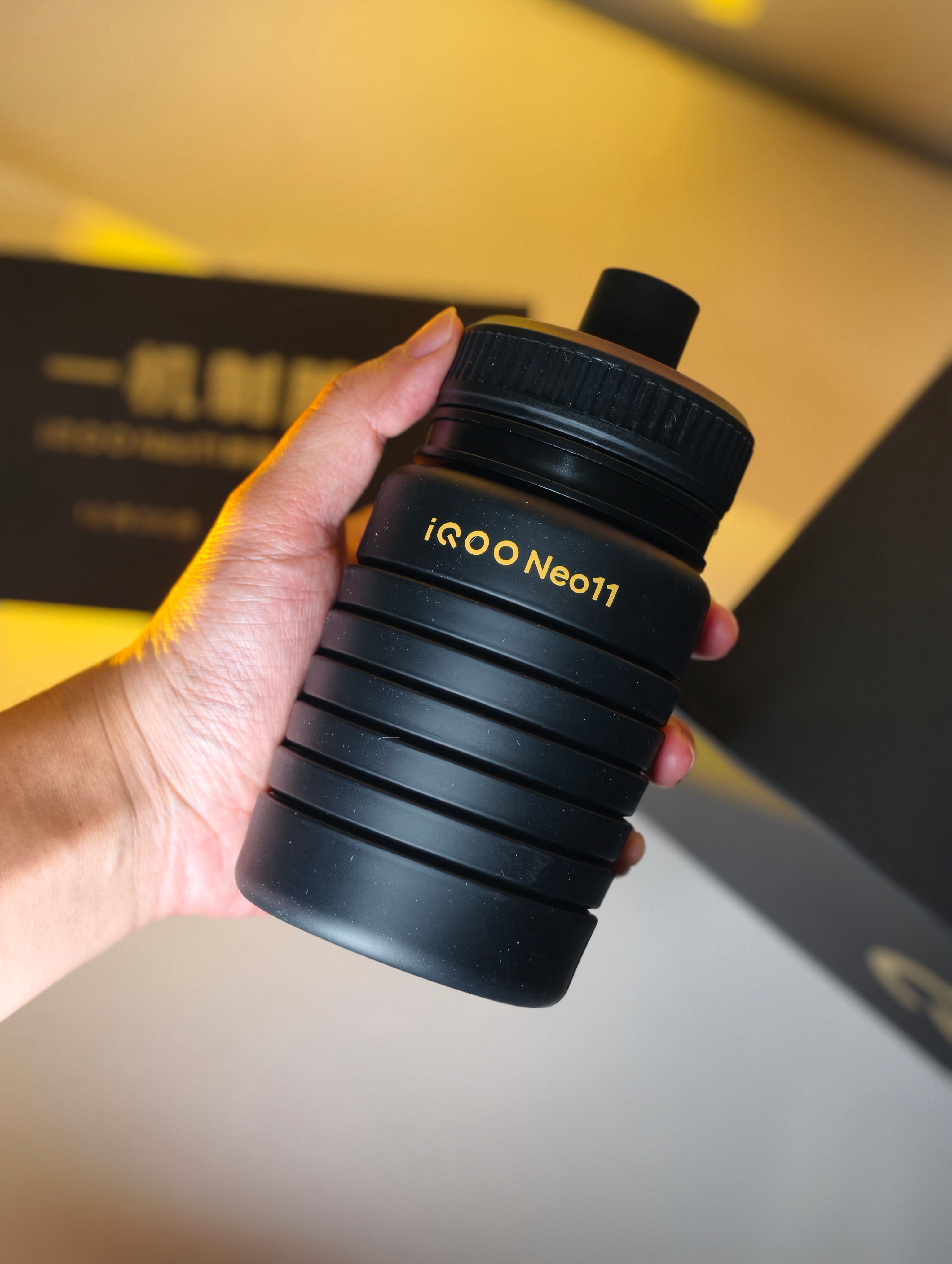 iQOO Neo11 明天发布,给大家看看这次的邀请函,是一个可伸缩折叠水杯(压缩高约10cm,拉伸后达30cm)