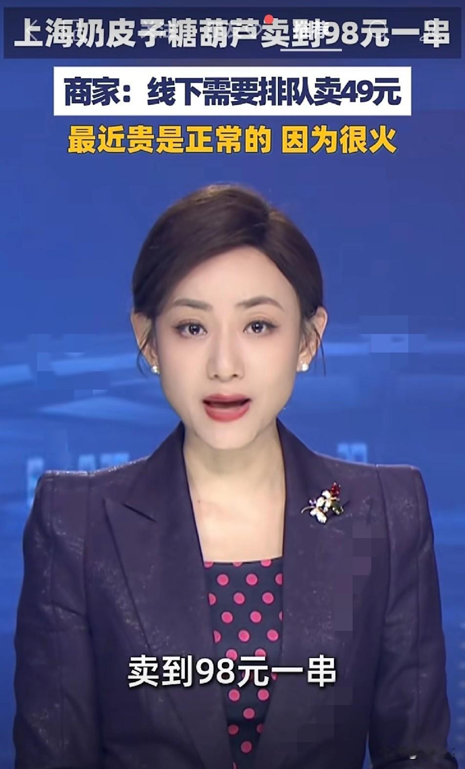 惊到失语 上海奶皮子糖葫芦卖98元一串 商家称“火了贵点正常”,你怎么看? 这糖葫芦价格也太离谱了!上海的奶皮子糖葫芦卖到98元一串线下排队买的话49元 美食界的“网红溢价”也不是头一回了 这哪是吃糖葫芦,分明是吃‘智商税’吧 要是你,会花近百元买一串糖葫芦吗 奶皮子糖葫芦到底啥味儿,能值这个价吗