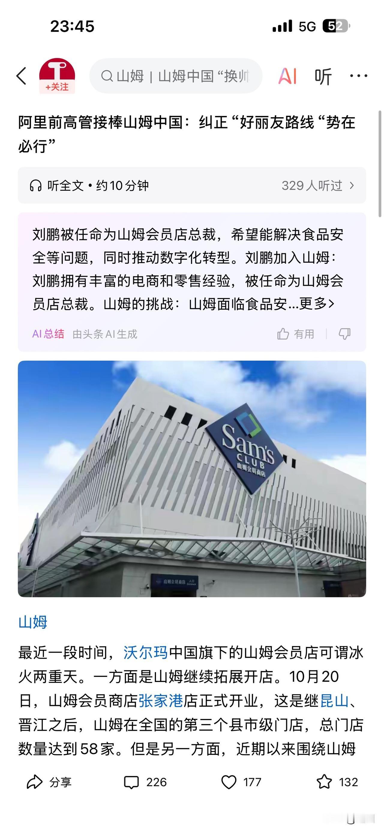近期传出阿里前高管接棒山姆中国后,针对现有采购模式要大改。针对此事,大家怎么看?