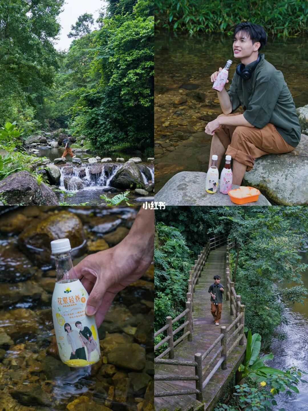 层层山围绕着的原始森林大氧吧 在30多℃的晴天下而这些地方依旧清爽 真的超级治愈! 把心情交给大自然,让心情出逃,去追寻内心的宁静! 所以我来给大家分享5条最治愈的徒步路线 - 1️⃣石门森林公园 定位:石门森林公园石门香雪 🎫门票:40 广州很少人去过的原始森林,有着很多百年老树,原生态小溪,可谓是逃离城市喧嚣回归自然的放松地。 - 2️⃣白水寨 🎫门票:56 长达5公里的小溪瀑布,行走崖壁间的步栈道看着川流不息的小溪跟从天而降的瀑布。太阳晒不到,真的会忘记烦恼感受大自然的美好。 - 3️⃣白江湖 🎫门票:10元, 晴天下的湖水蓝的发光,真的好美😍,有点九寨沟的感觉了,而且山顶的水库真的很像牛仔湖,很适合周末轻松徒步。 - 4️⃣千龙湖大瀑布 🎫门票:30(团购) 有着亚洲最宽的的瀑布,且有着百米高,雨天过后真的超级壮观。就算晴天下都得穿多一件衣服,超凉快。 - 5️⃣下溪村 🎫门票:免费 有着广州最美乡村之称,可以在川流不息的小溪边露营,进入山里还能寻找瀑布。 最后一定要去旁边的溪头村逛逛,有着媲美大景的古村落。 - 🔸夏日徒步中,舒服治愈是我第一天选项。所以选饮品都要清爽的,会让我的心情更加放松。像花果轻养茉莉柚子茶,真的是我的最爱之一了,开瓶就能闻到一股花果茶的清香,喝下去清清爽爽不甜腻的感觉,边喝边补水,似乎让夏天都清凉起来了,让我在森林中感觉很轻松自在。 而且还是低糖,0脂肪,喝起来没负担,瓶身拍照也好好看。 花果轻养玫瑰葡萄茶也同样推荐,添加葡萄籽提取物,真花真茶叶真果汁 ~真材实料,更加健康! - 对了~ 小伙伴们瓶盖里有惊喜哦!告诉你们一个信息点是【房东的猫】,其他的自己去体验吧! - 🔸如果有一天累了,不防跟我一起逃离城市亲近大自然吧~ 享受心情出逃~~轻盈又治愈! - ✅温馨提示:每一景点笔记主页都有详细攻略,在收藏里已经分类好。喜欢的小伙伴都可以看看啦~ -