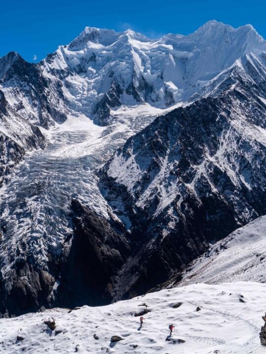 D8徒步9公里:营地→那宗垭口4650m→废弃牛棚→梅里北坡汇合点3700→坡均营地4100(57.5km)