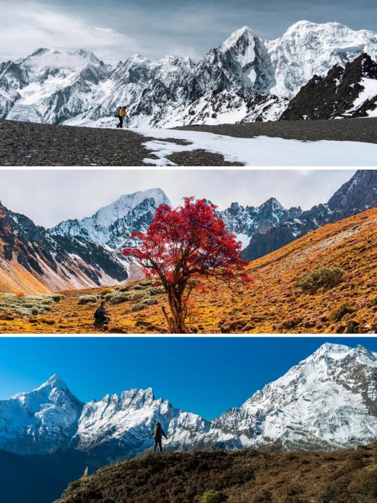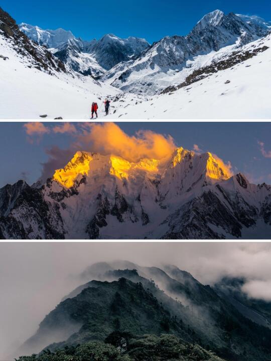 D2徒步9.5公里:西当村/上雨崩→南宗垭口3770(坐车/徒步)→主措什贡垭口4450→崩顶格营地4300(9.5km)