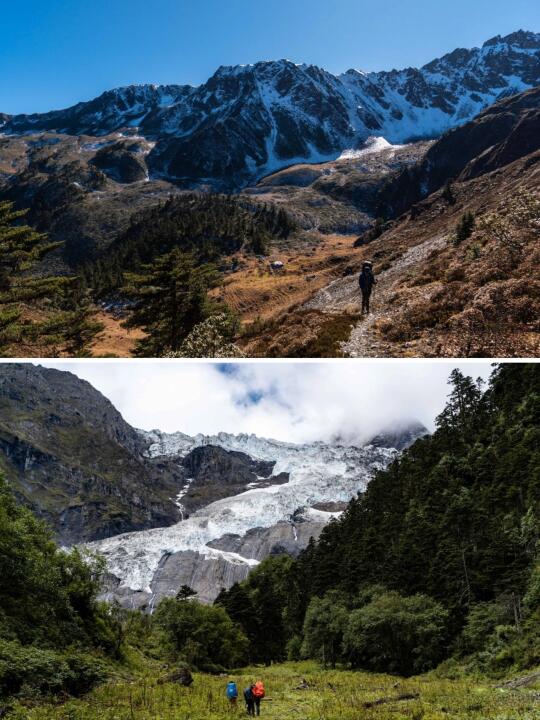 D4徒步10公里:明永村→明永山脊营地4300/无水(28.5km,难度大,爬升2000)