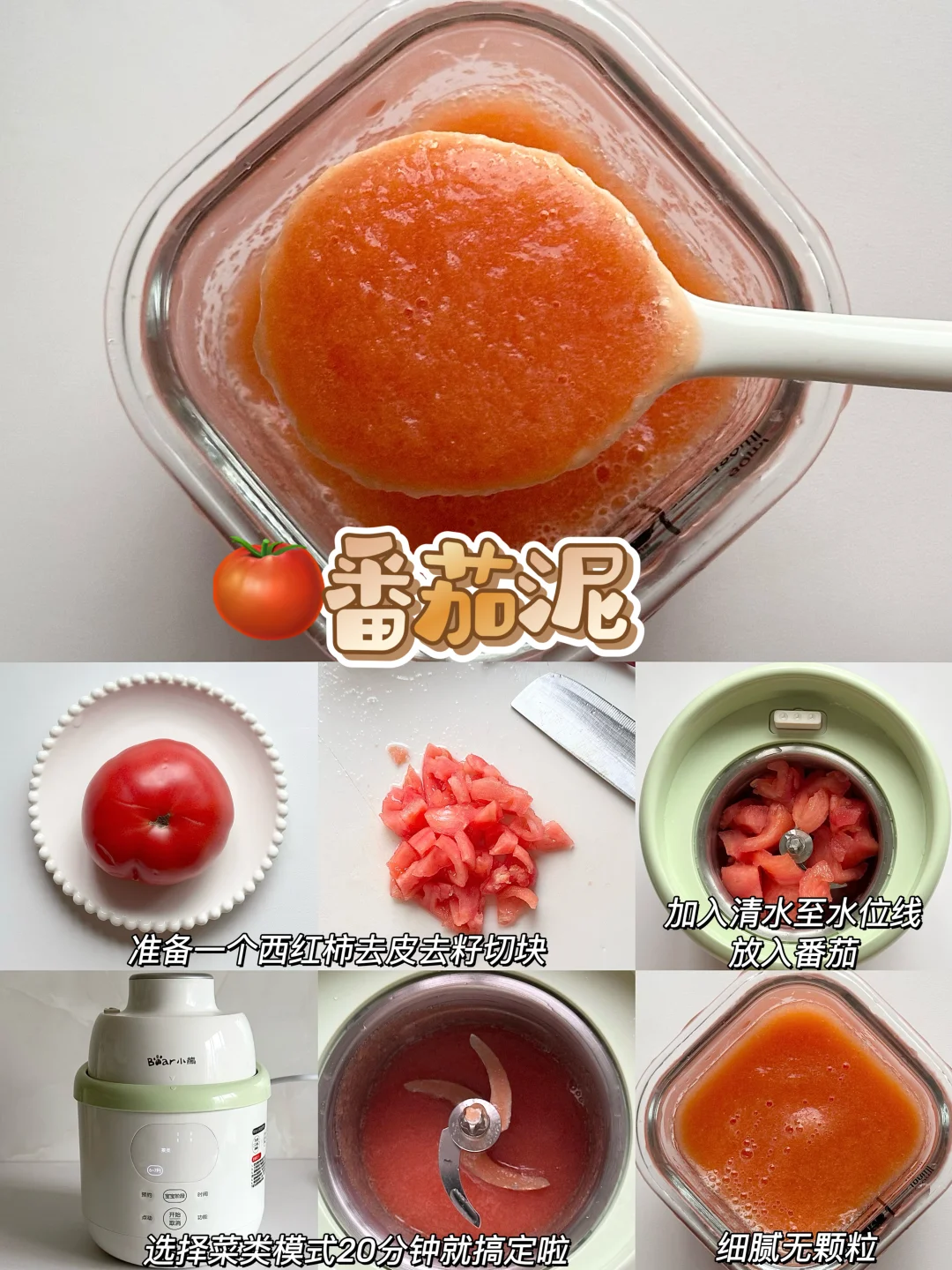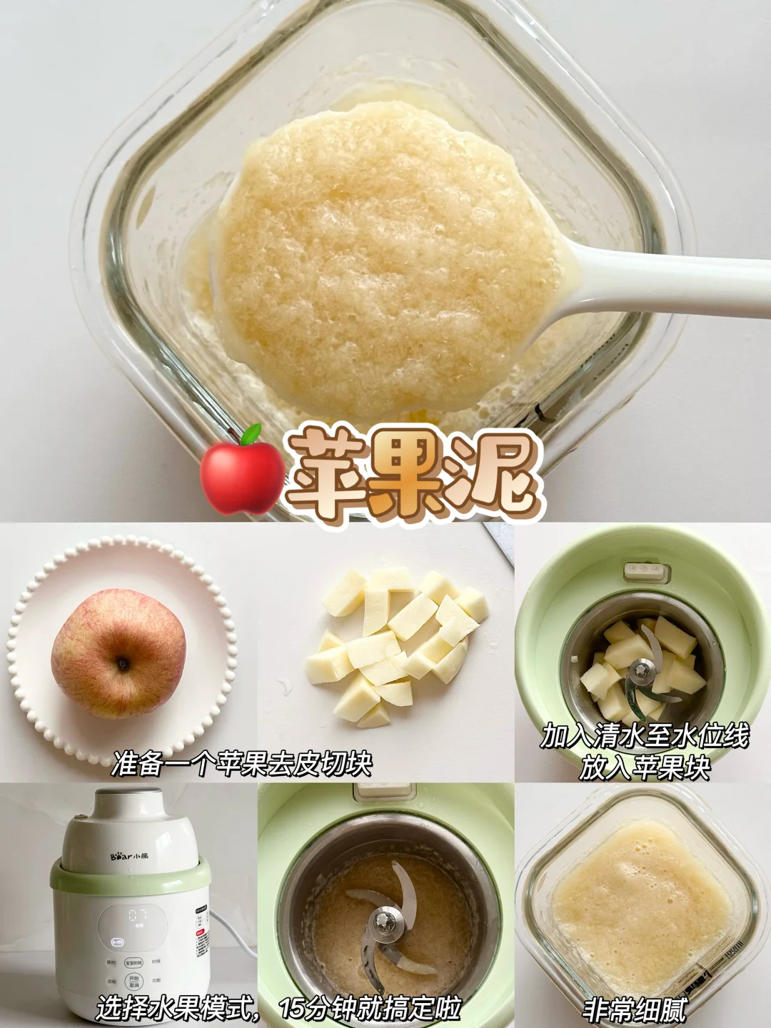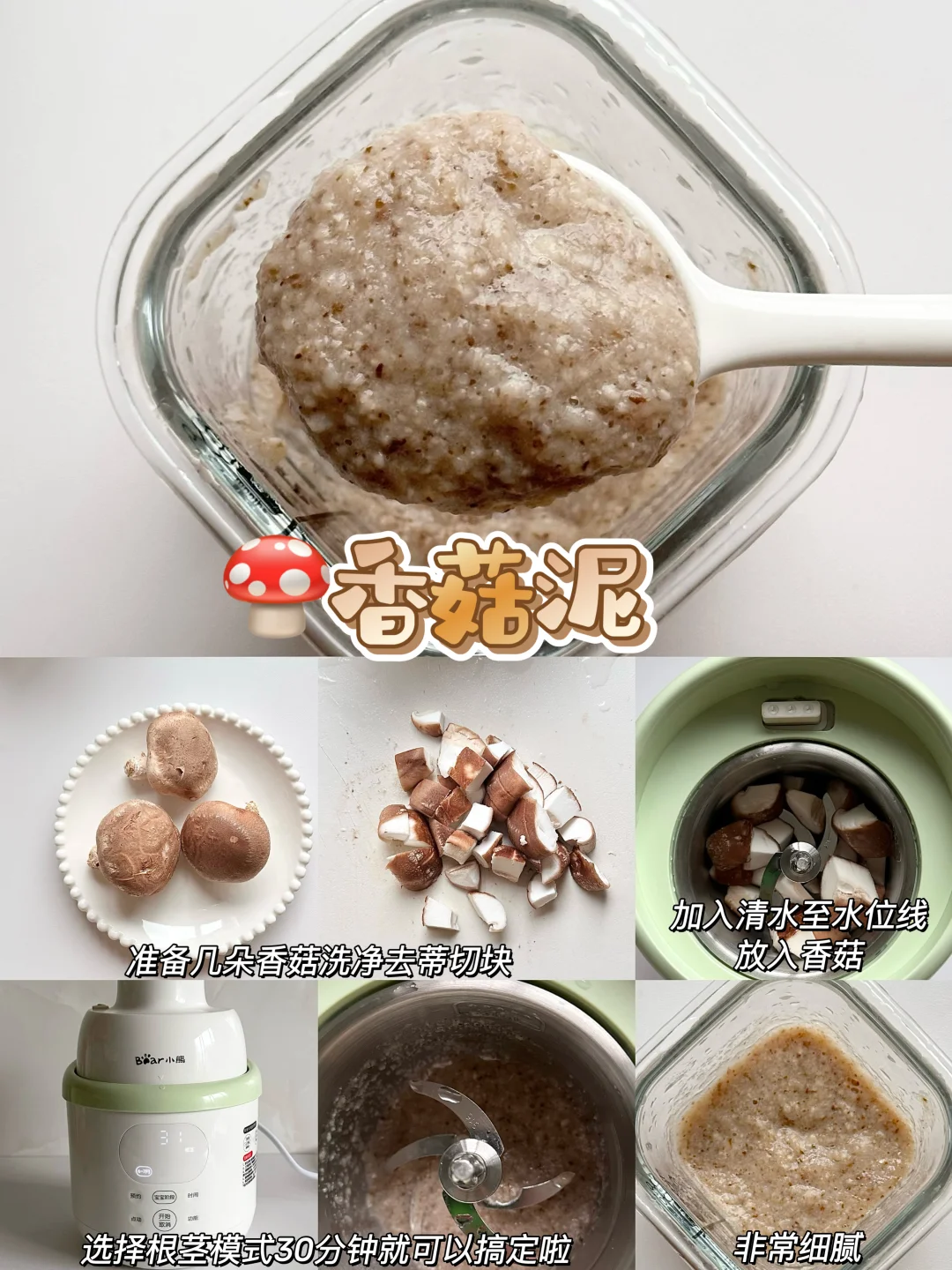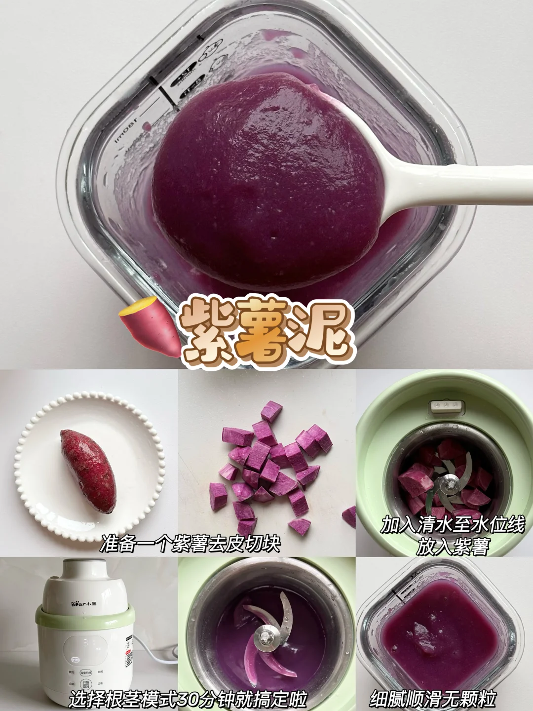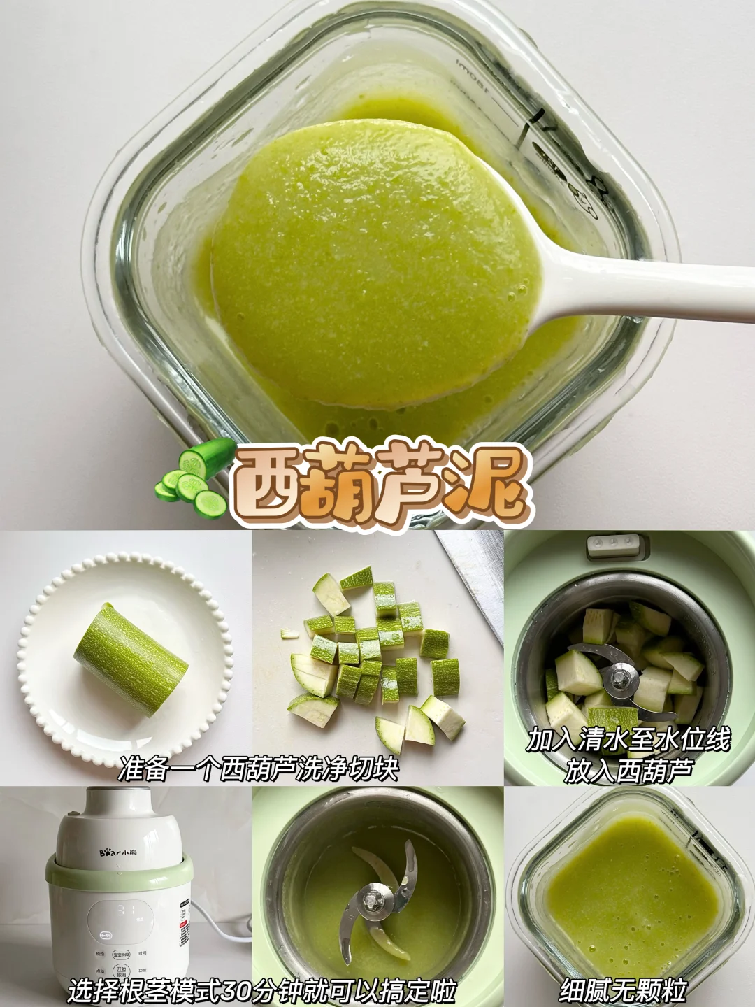 👶🏻宝宝6个月的时候就可以添加辅食啦~纯米粉添加一周后解锁了核桃油,后面开始辅食泥菜泥,肉泥,排敏,今天给大家整理了一下小月龄宝宝初添加辅食泥的做法以及解冻方法,新手麻麻赶快码住咯~ - 🌈初添加菜泥和肉泥都要排敏三天观察有无过敏,然后再继续吃下一种食材~7月龄左右的时候就可以混合搭配食材添加啦~ 关于如何储存和解冻 🌟辅食泥做好后当天吃过一次,剩下的就可以装进模具放进冰箱冷冻,等4个小时左右取出装进食品级密封袋里,下次吃的时候直接放进辅食碗加热就好啦~绿叶蔬菜泥不建议冷冻哦~当天吃当天做就好了! 🌟根茎类和肉类最好做3天的量就可以啦,最长时间不得超过一周哦~ - 💡宝宝添加辅食看起来只需要做食物泥很简便,实际上要洗的东西太多啦,要洗蒸锅、蒸碗、搅拌机刀头刀片…我想着如果能一次性搞定蒸煮和搅打的工具就好啦! 结果发现了这个小熊小食光辅食机,一键蒸煮+搅打不用有其他操作,从微量到大容量都能搅打细腻,宝宝蔬菜泥、果泥、肉泥都可以一键操作,再也不用洗那么多工具! 而且预设了从6个月到10个月的辅食程序,制作的时候按照宝宝月龄选择程序,就可以自动制作啦,全程只需要把食材切一下放进去,实在是太省心了! 接触食材的部分都是全316+304不锈钢内胆和刀片,宝宝吃着安心,麻麻更放心 清洁无死角可拆洗,轻松搞定各种辅食,有了这款辅食机麻麻再也不用担心啦~