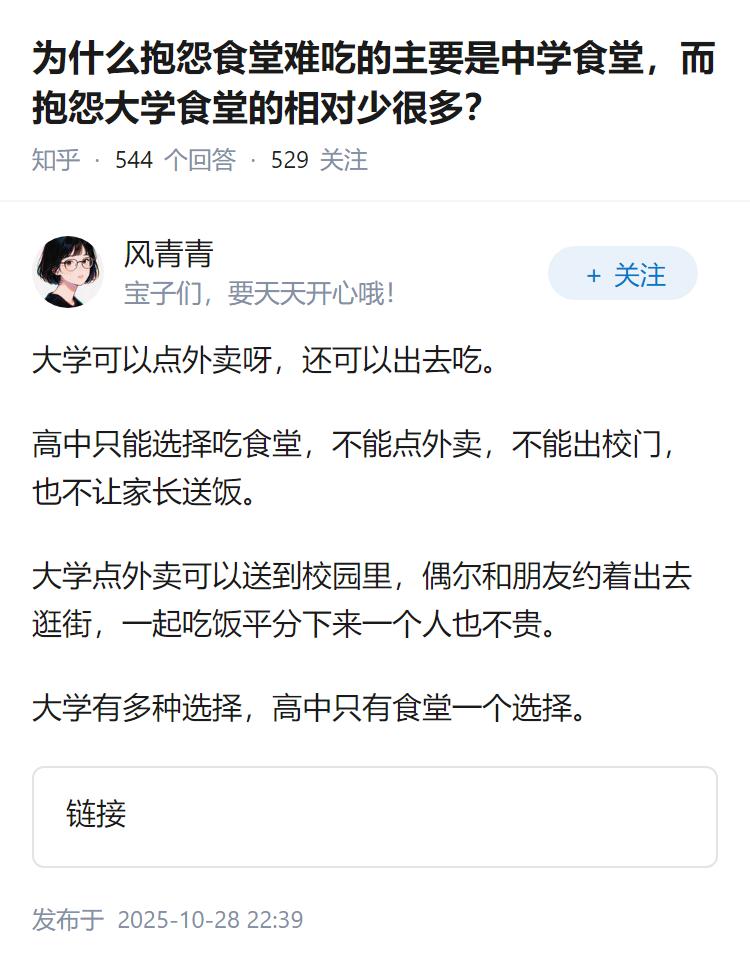 为什么抱怨食堂难吃的主要是中学食堂,而抱怨大学食堂的相对少很多?