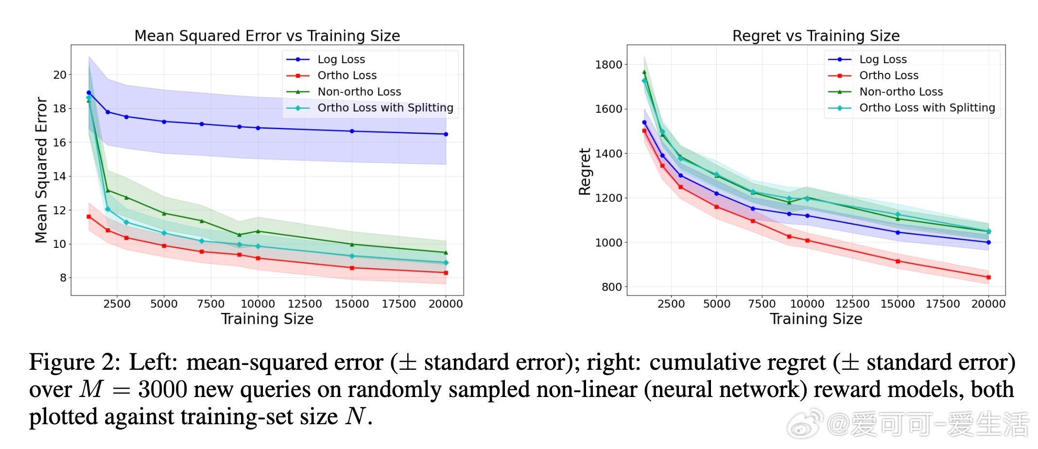 实验部分涵盖了线性奖励模型、非线性神经网络模型以及真实文本到图像偏好数据集(Pick-a-pic)上的半合成实验。结果显示,正交损失函数在均方误差和策略后悔率上均显著优于仅用偏好信息的传统对数损失和非正交响应时间损失。此外,将该方法嵌入主动查询的最优臂识别算法中也获得了更优性能。