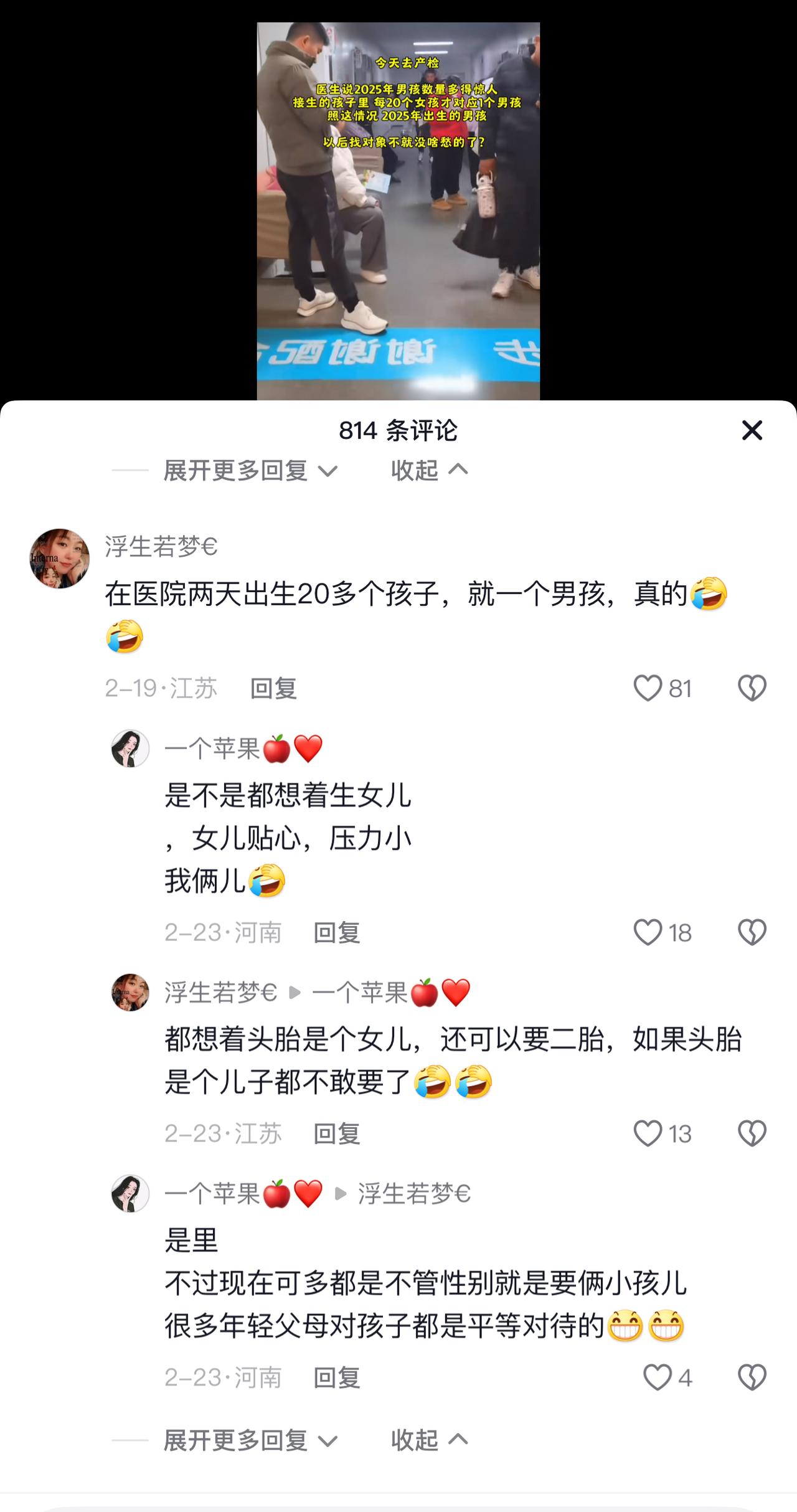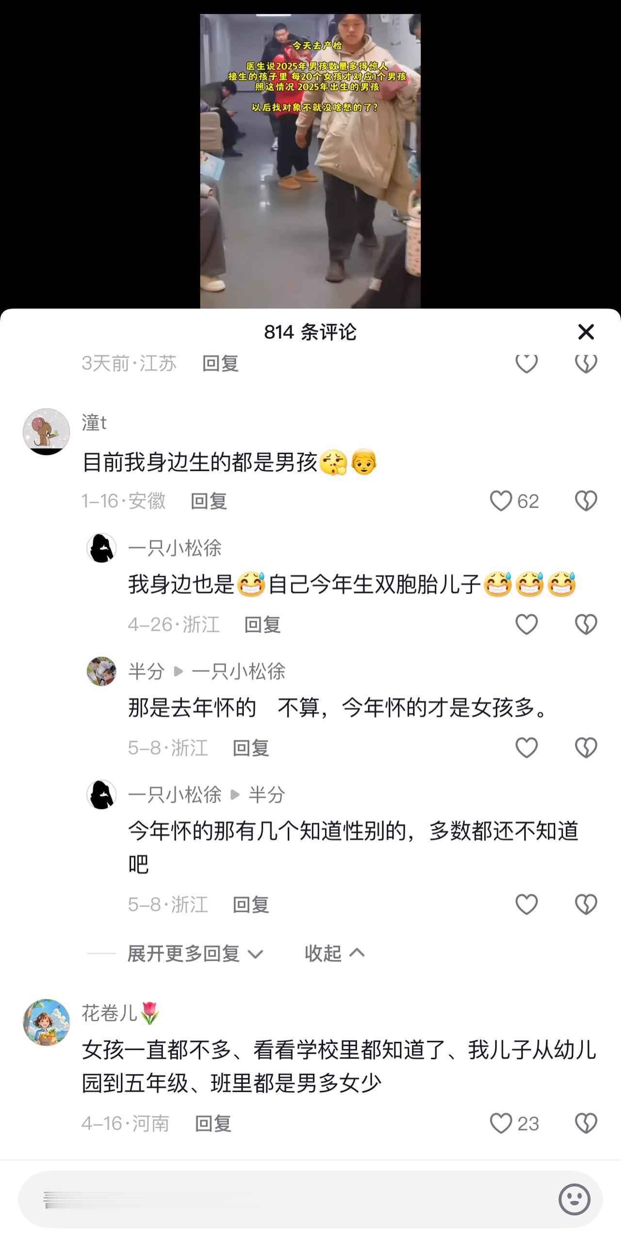 昨天突然发现一个很严峻的问题,我发现我认识的人里面大多数人生的都是女孩,我们这个楼道里十来个小孩,都是小女孩! 也不知道是现代人压力大导致的还是其他原因,据说压力大的人大多数生的都是小女孩,毕竟物竞天择适者生存。人体是有灵性的,当一个人怀孕的时候,胎儿会考量你这个人身处的生存环境,会决定你的胎儿是男的还是女的。一般情绪稳定,生存环境良好的生男孩的概率大一点,他们会误以为自己有王位继承。而生存环境波动较大的,他们可能为了减轻自己父母的负担,就以女孩的身份出现! 也有人认为是现代转基因食品泛滥,不健康的食品横行,比如添加剂过多,会破坏男子精子中y!导致生女孩的几率越来越大! 而通过观察得到大城市出生的女孩概率比较大,二三线以下城市和地方生男孩的概率比较大!其实大城市里新生儿大多数都是外地年轻人,这些年轻人大多数背井离乡,至于为什么背井离乡?老话说的对家贫走他乡!而留在老家发展的大多数都是有一定根基的,或者体力劳动者!其实体力劳动者生存环境也波动不大!而且能够长期从事体力劳动的也是强者! 至于生女孩真的就会生活压力小吗?事实上女多男少依然对这一群体是不友好的!天道会平衡阴阳强弱,人道则不然,会强者恒强,弱者恒弱!许多我们这样背井离乡的大多数到了大城市发展,其实最后还是相对较弱的群体!大自然优胜劣汰,最后大多数几十年后湮没在大城市里,无影无踪!