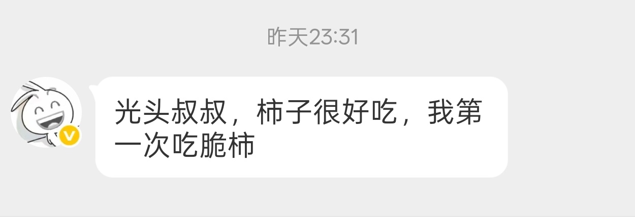 大家早啊,刚起床看到私信有粉丝和我反馈,说脆柿子很好吃[嘻嘻][嘻嘻]