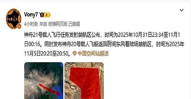 10月30日,据央视新闻报道,刚刚载人航天办公室公布张静波宣布,神舟21号航天员