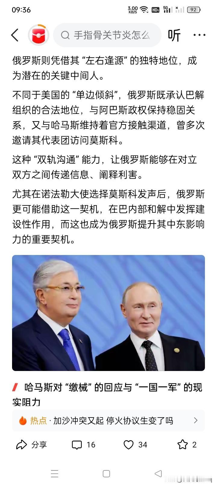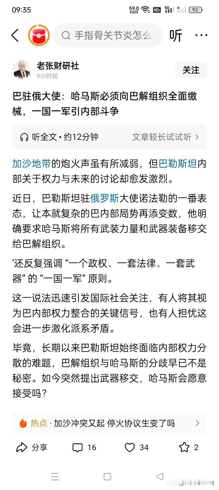 哈马斯与以色列作战,巴解组织获利! 最近,约旦河西岸地区的巴勒斯坦民族解放组织驻俄罗斯大使诺法勒要求:哈马斯武装组织必须要将所有武装力量和武器装备交给巴勒斯坦解放组织,而不是交给以色列军队。 目前与哈马斯作战的仍然是以色列军队,假如让哈马斯武装组织力量和武器装备交给巴勒斯坦解放组织,显然存在相当多的困难。 但是有人奇思妙想的认为,俄罗斯“左右逢源”的态度,可能可以作为潜在的调解人。这好像有点隔山打牛,水中捞月,因为前段时间在埃及召开的中东和平会议,虽然似乎有很多国家受到邀请参会,但并没有邀请俄罗斯。因此,很有点异想天开的意思。