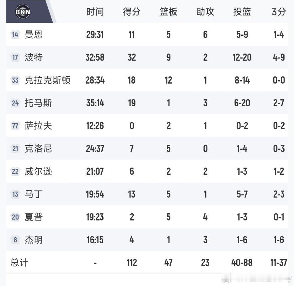 迈克尔波特32分9篮板,托马斯20投19分,克拉克斯顿18分12篮板