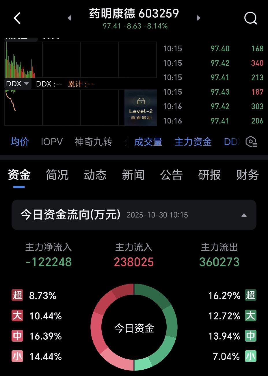 药明康德一个减持杀伤力太大了,上午一个小时不到,主力已卖出了12亿了,股价也是一泻千里,散户亏的哭爹喊娘。 这种股东减持,难道管理层都不管的?散户亏的钱,谁来负责?