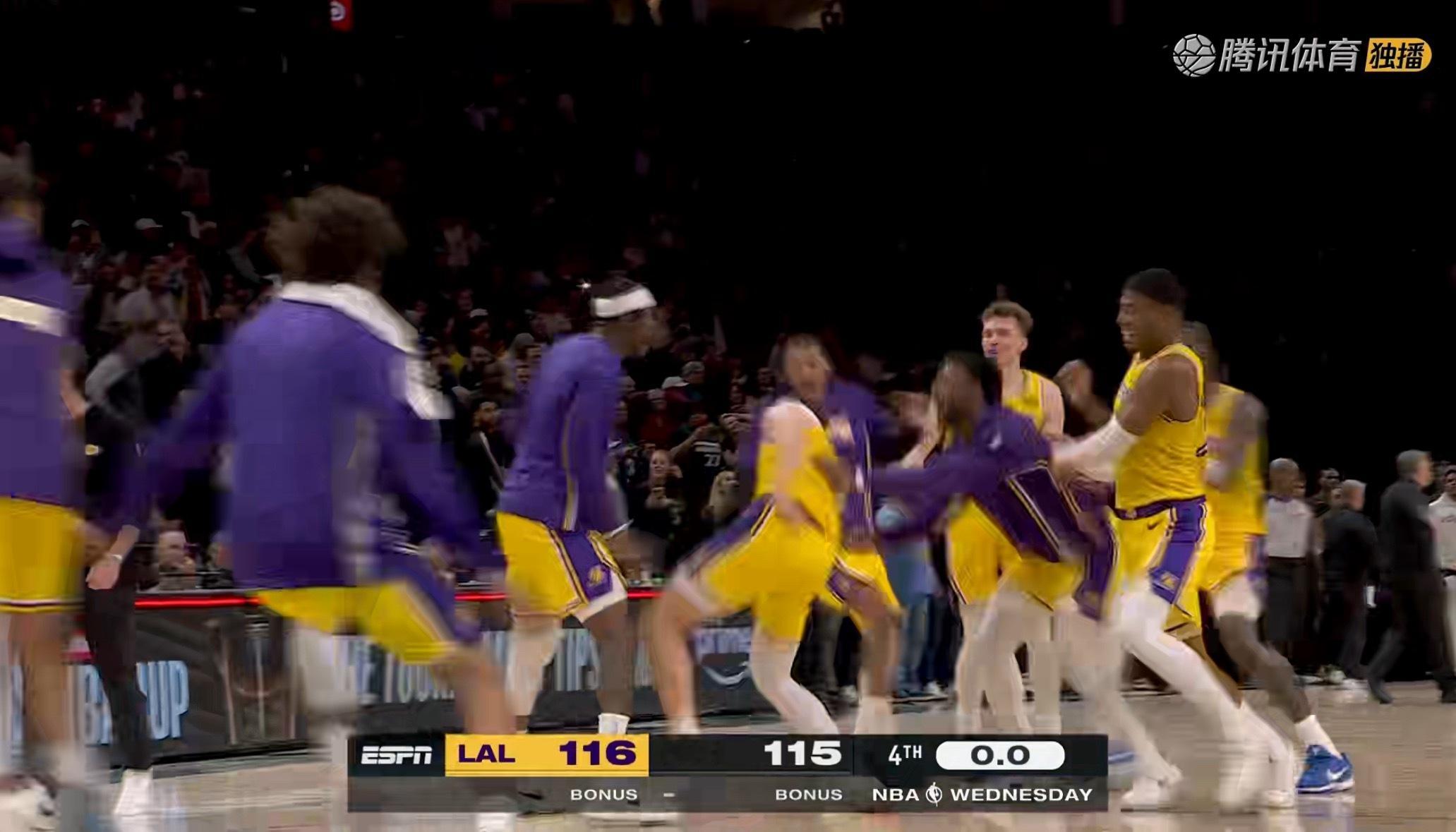 比赛结束,湖人不敌勇士。 勇士vs湖人