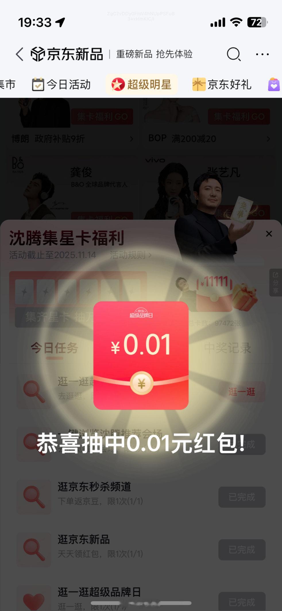 来京东集超级星卡抽万元红包超级明星联盟腾哥最近简直是长在笑点上的男人,综艺各种神操作、神回复,直接把节目效果拉满!对了,腾粉们记得来京东集明星星卡!参与就有机会赢京东红包、品牌1分购优惠券,还有腾哥周边和亲签!想象一下,拿着腾哥签名的周边,那不得天天乐开花啊!这波福利腾粉们可千万别错过,错过真的会哭成“悲伤蛙”!上京东搜索“集明星星卡”,抽亲签周边、实物奖品等惊喜好礼,更有至高11111元红包补贴哦~今晚8点京东11.11连续3天疯狂加补京东11.11 又好又便宜速戳