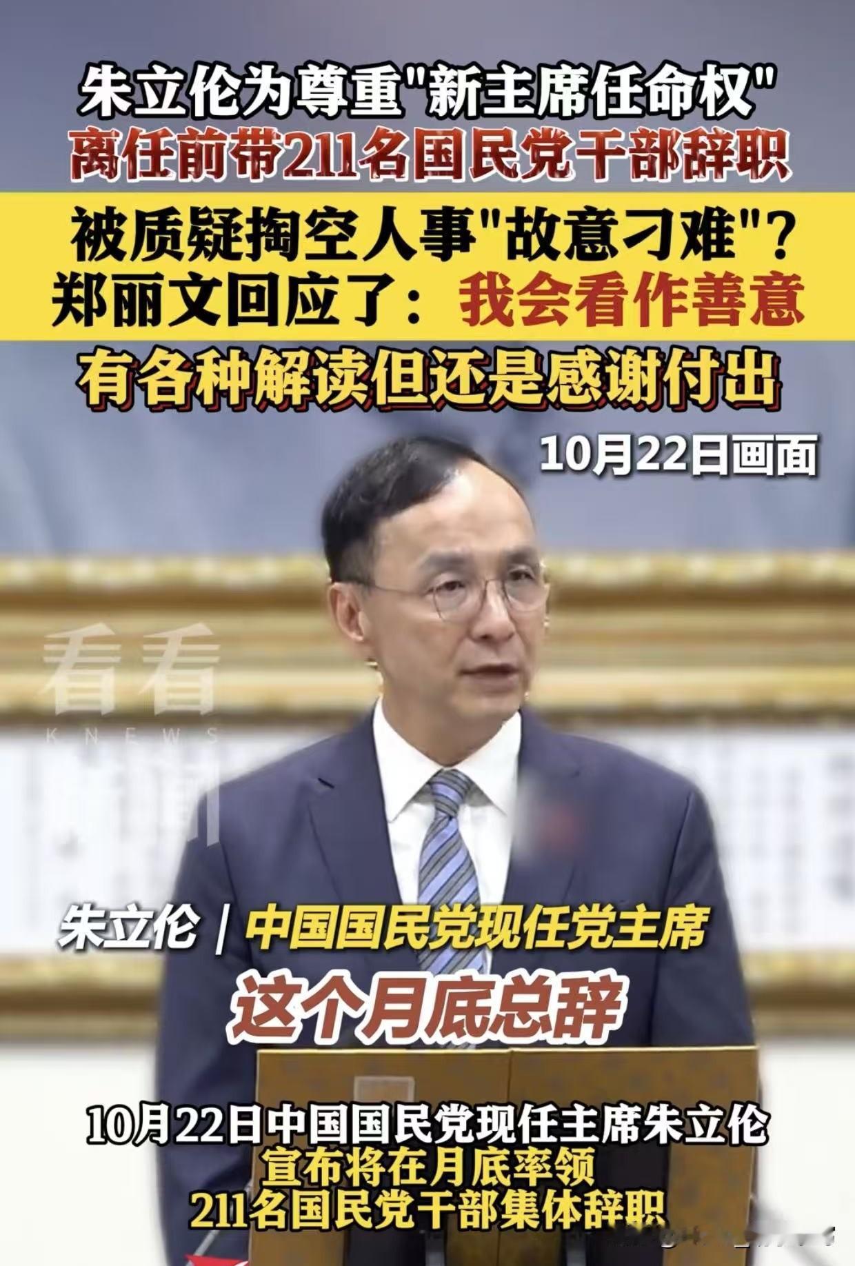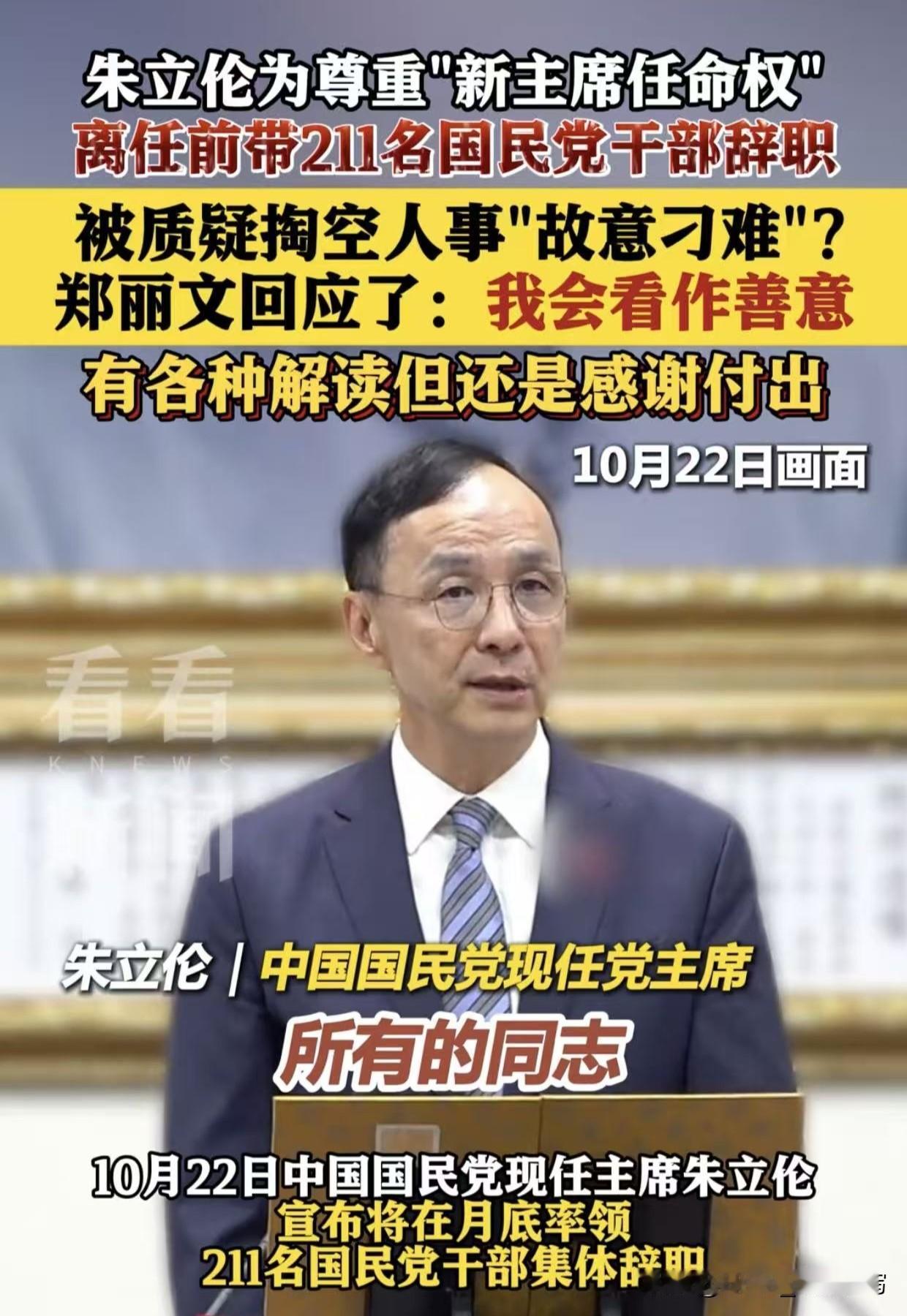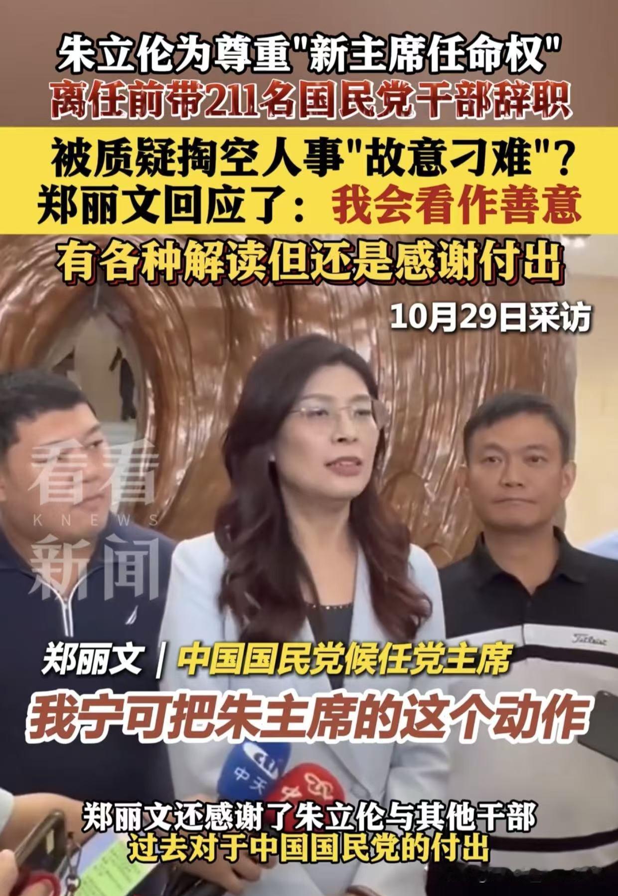 211人集体辞职,郑丽文这下真被架在火上烤了! 朱某带头走人,人走楼空,想挽回?难! 一个个去请?累死也未必管用,人家只认原来的头儿。 派别人去?人家理都不理!想谈?朱某也不一定给面子。 新人补得上吗?211个位子,填得满人,填不满心。 自己人能顶上关键岗吗?全是问号。 可话说回来,乱到极点,反倒可能重生! 要是她能趁机整顿队伍,拉回人心,未必不能逆风翻盘。 真正的考验,从来不是顺风顺水, 而是看谁能在塌房后,一砖一瓦把楼重新盖起来。 你觉得她行吗?对此你怎么看?