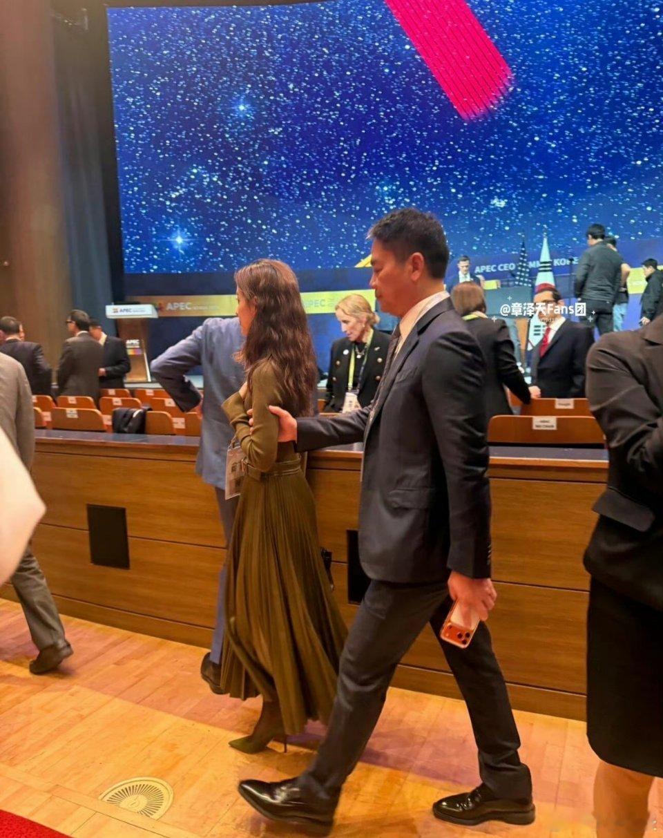 刘强东扶着章泽天现在是刘强东扶着章泽天,等以后就是章泽天扶着刘强东了。