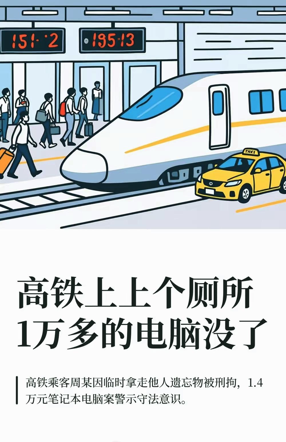 心真大啊!高铁上上个厕所的功夫,一万四的电脑就没了,这小偷的胆子和愚蠢程度真让人开眼! 邻座周某20秒就上手,动作熟练得像惯犯,可他怕是忘了,现在高铁全是高清监控,买票还得实名制。民警12小时就找上门人赃并获,他居然还嘴硬说是“捡”的,这借口也太敷衍了。 真搞不懂这种人咋想的,偷来的电脑卖不了几个钱,却要背上盗窃污点,连孩子考公考编都受影响。这根本不是“顺手牵羊”,就是心存侥幸的糊涂账,觉得短暂离开没人看见就能得逞。 别以为车厢是保险箱,铁路民警早就提醒过,贵重物品离身就容易给不法分子可乘之机。刘先生能找回来算幸运,可不是每次都有这好运气。 你出门在外会把贵重物品随便放吗?遇到过类似的糟心事吗?小偷 高铁上惊 一幕 高铁丢物品 网络小偷 高铁丢东西