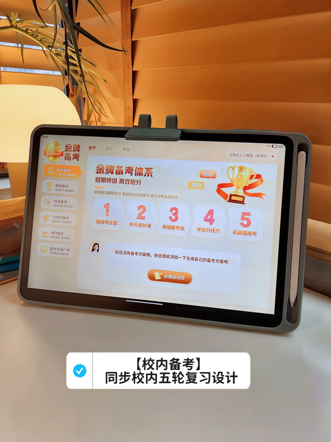 首先就是这个【校内备考】模式,我觉得特别棒,以后肯定能一直用上,它会先给孩子做一个摸底测试,