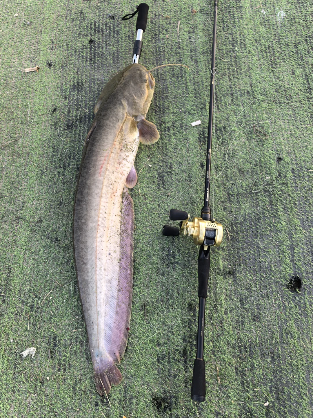 钓了一条,上了米级大鲶鱼,30斤!还有两条10多斤的鲶鱼,10斤的花鲢,金目鲈鱼,白鲳,翘嘴。
