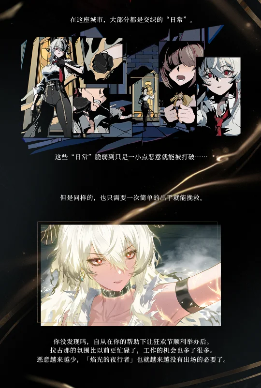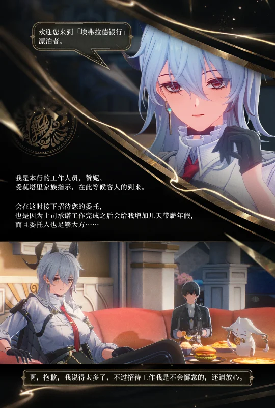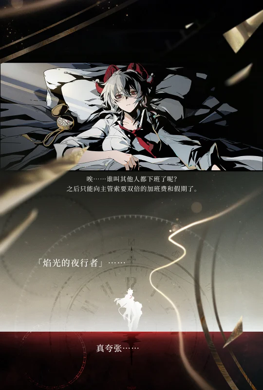 埃弗拉德金库防卫科雇员,最佳员工称号的常年保持者。 她为自己的业余时间做了无数种计划和安排,但事到如今,还是先想办法准时下班吧。