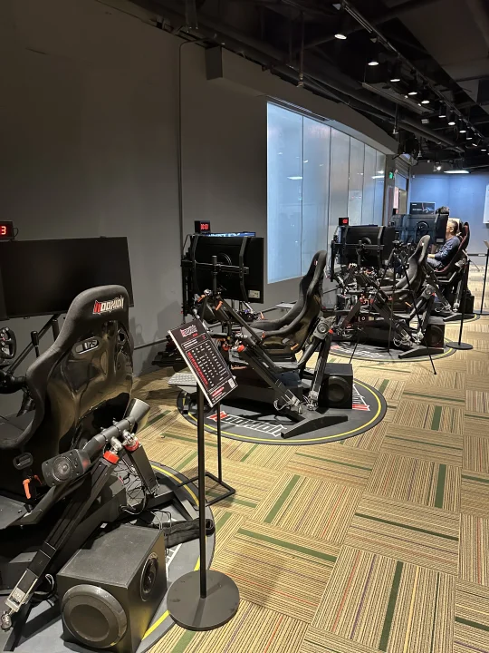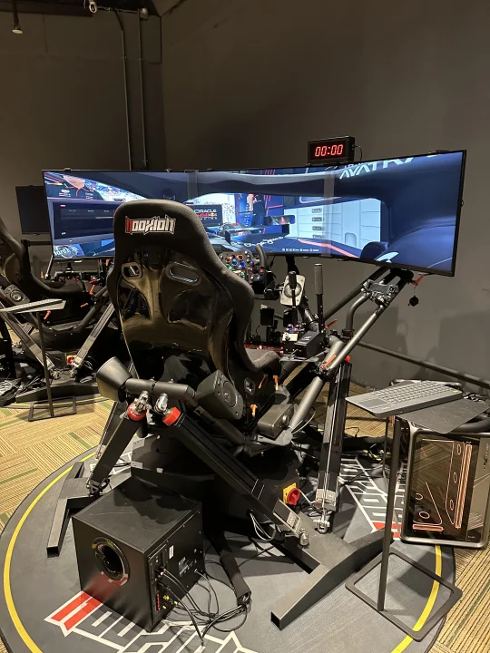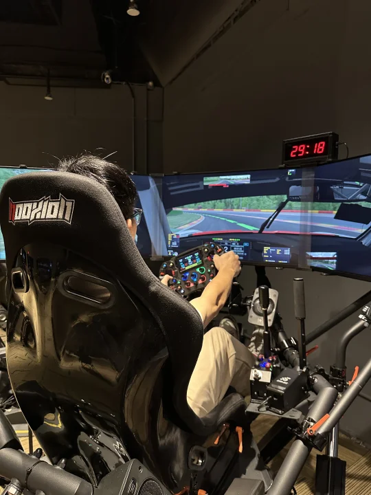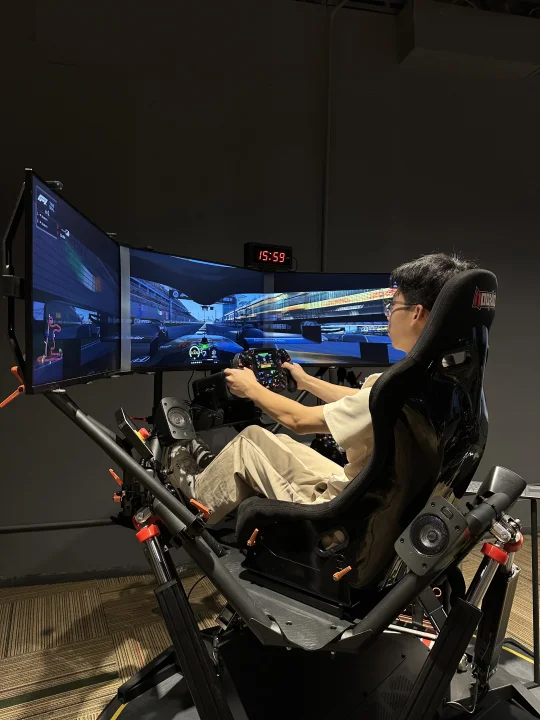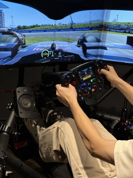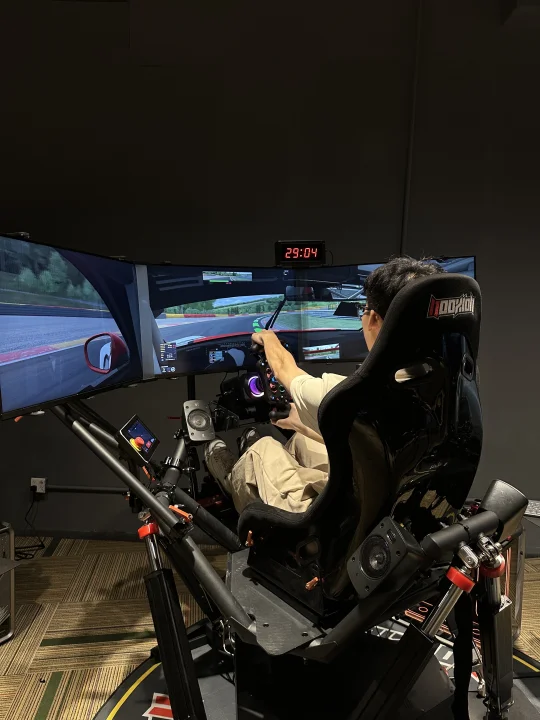 这30分钟真的玩到不想走!以前总听人说动态模拟器牛,这次才算真正体验到——连压到路肩的颠簸感都能还原,方向盘的阻力会跟着车速变,F1和GT3的手感差异特别明显,对赛车迷来说真的太戳了💘