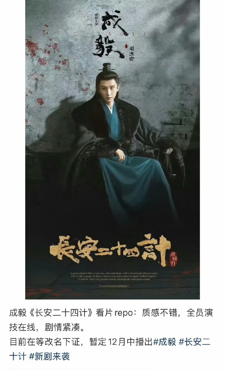 娱乐[超话]网传长安二十四计改名飞鸿引 成毅长安二十四计看片repo来了,改名飞鸿引!等下证!成毅长安二十四计看片repo